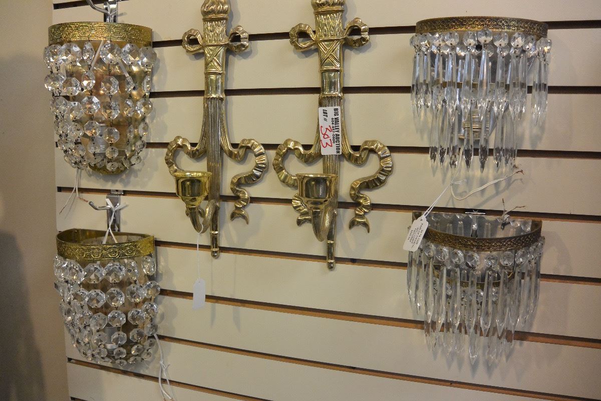 LOT OF BRASS AND CYRTSAL SCONCES