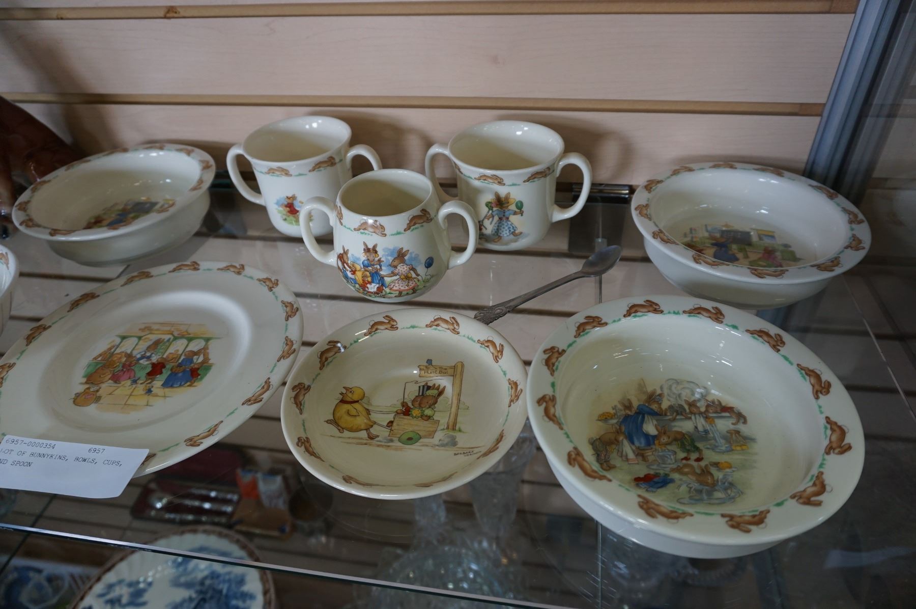 LOT OF BUNNYKINS, BOWLS, CUPS, AND SPOON
