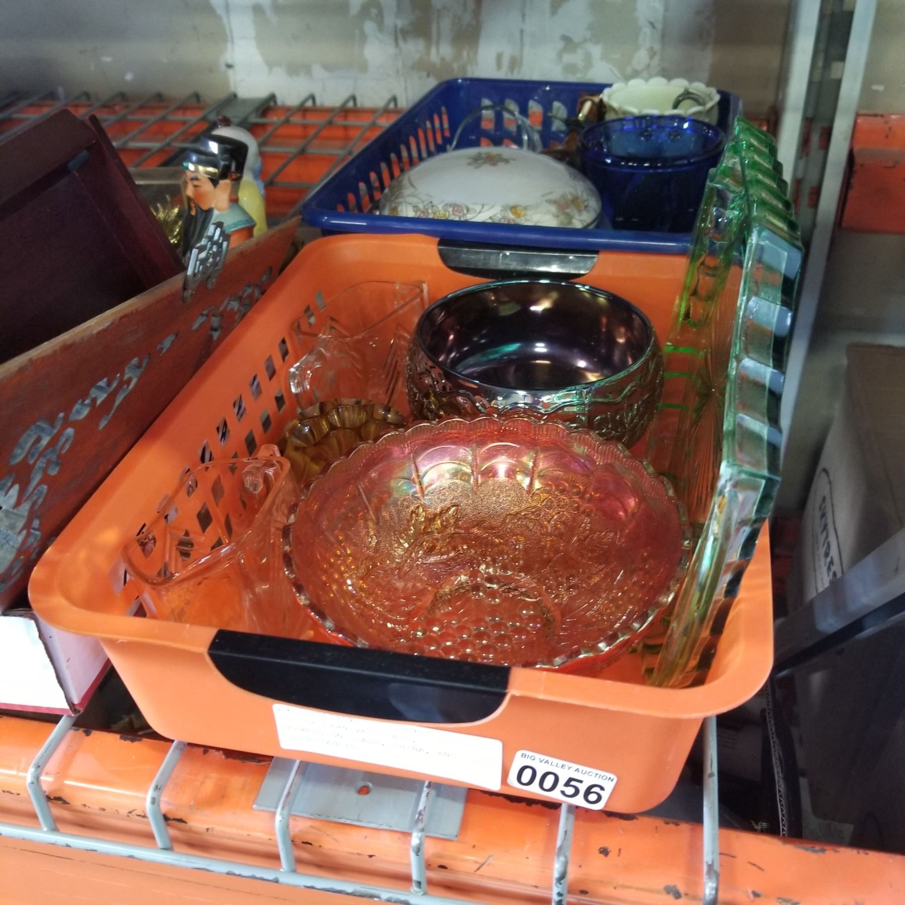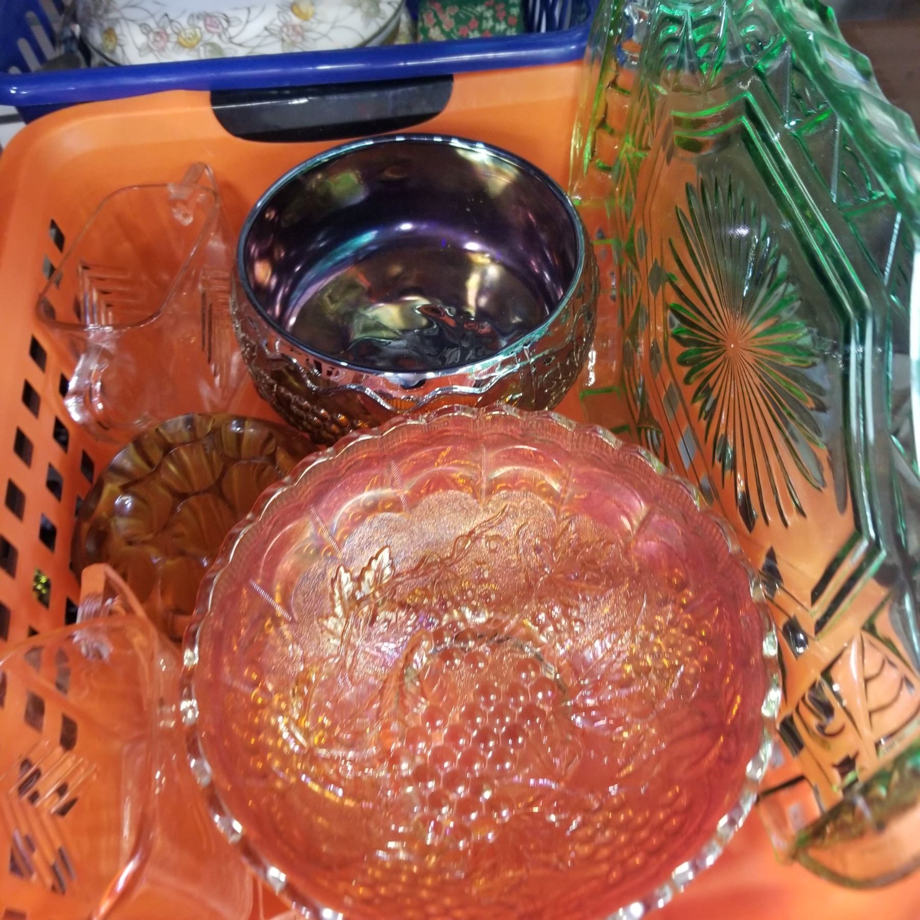 LOT OF CARNIVAL GLASS, DEPRESSION GLASS, CHINA, AND COLLECTABLES