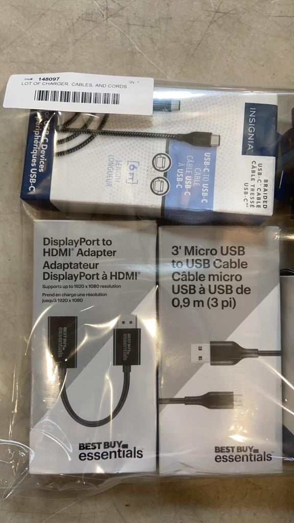 LOT OF CHARGER, CABLES, AND CORDS