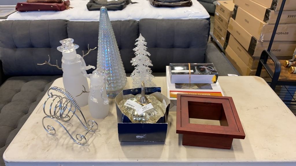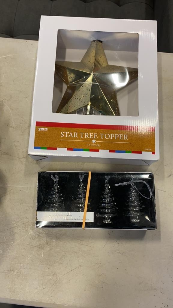 LOT OF CHRISTMAS DECOR, STAR TREE TOPPER, WINE BOTTLE STAND