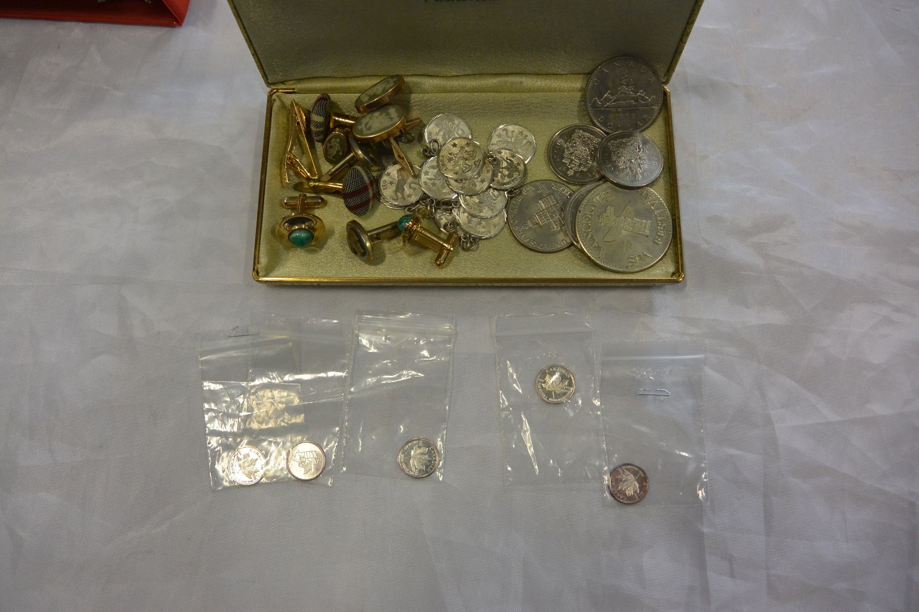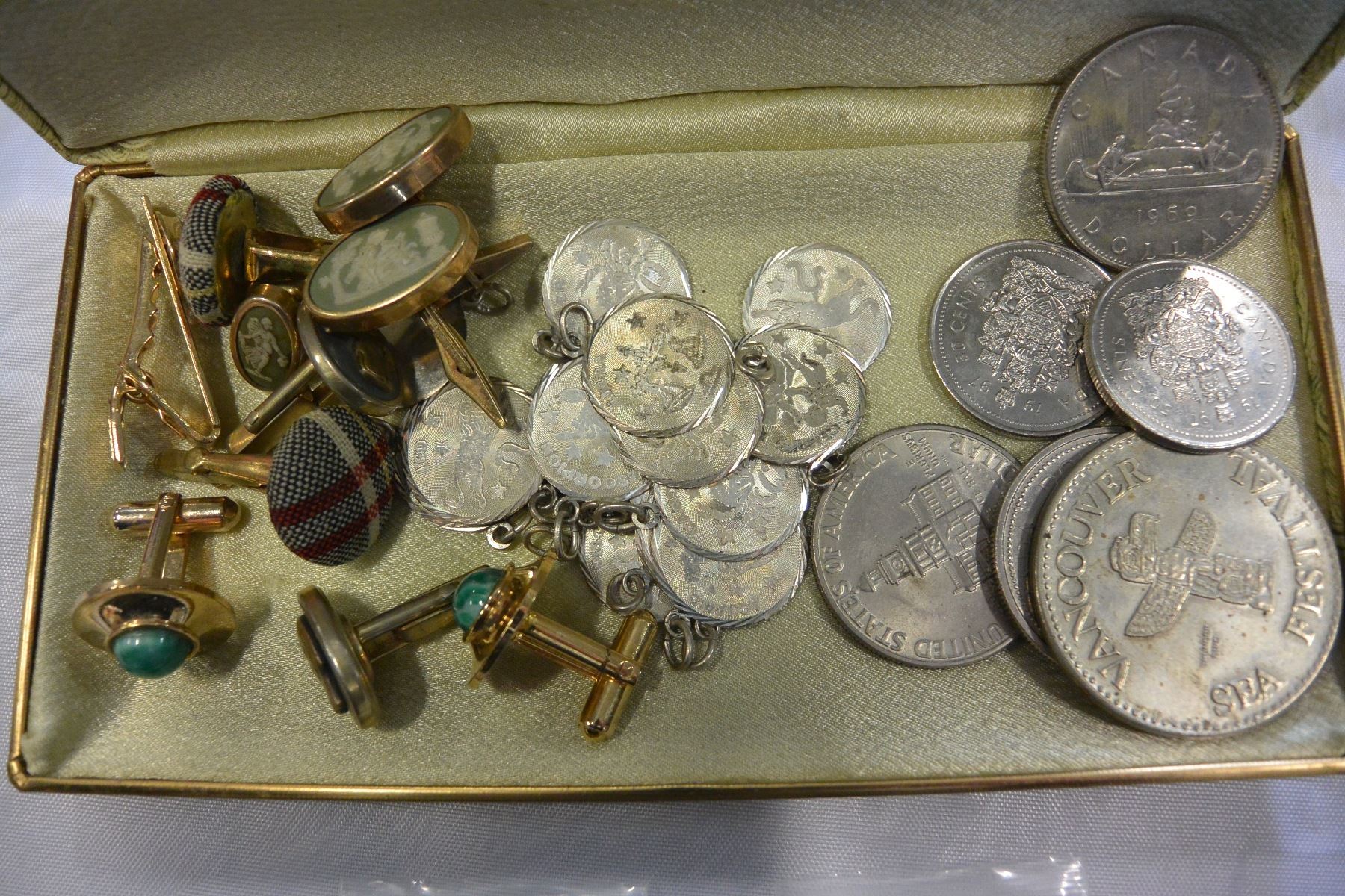 LOT OF COINS ZODIACK SIGNS WEDGWOOD CUFFLINKS AND OTHER CUFFLINKS