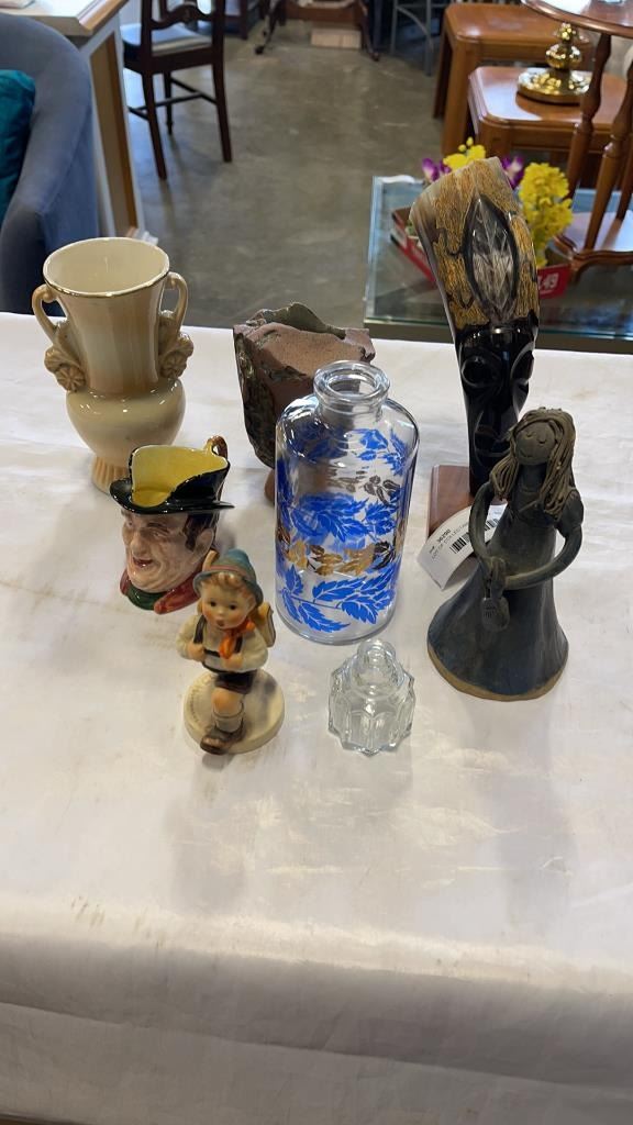 LOT OF COLLECTABLES AND FIGURES, CHIPPED HUMMEL, CHIPPED ROYAL WINTON GRIMWADES FACE MUG