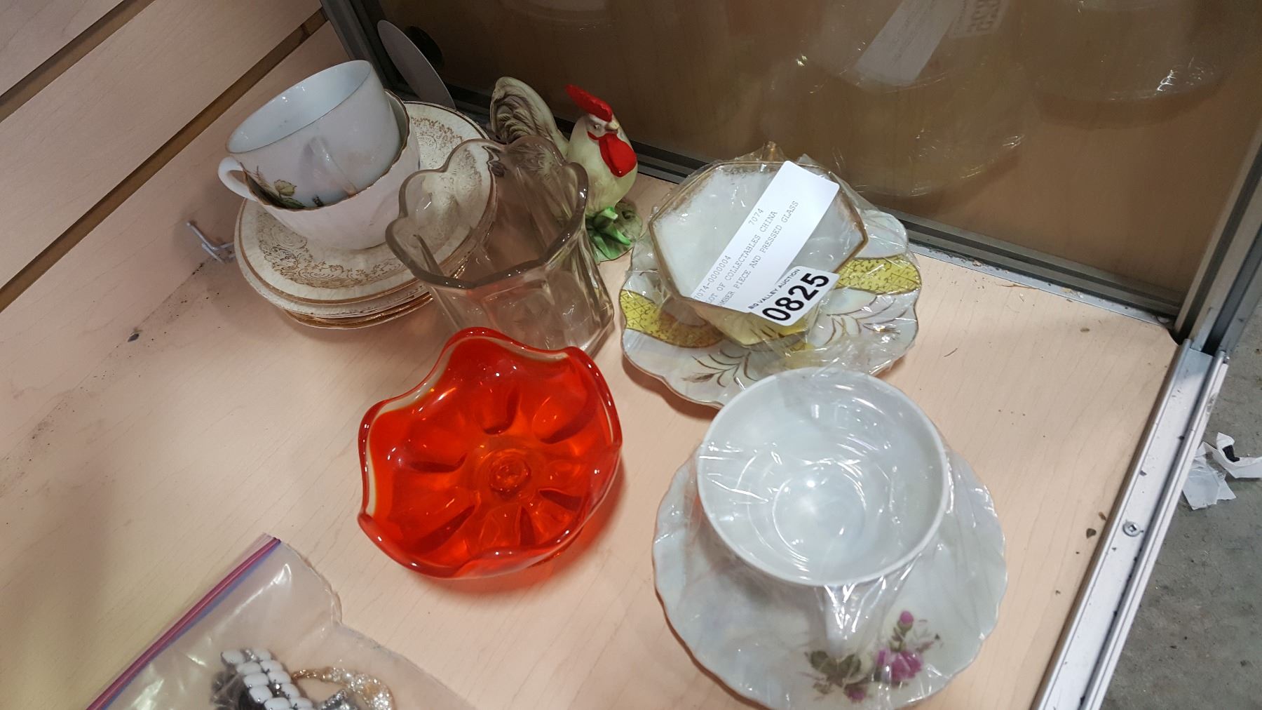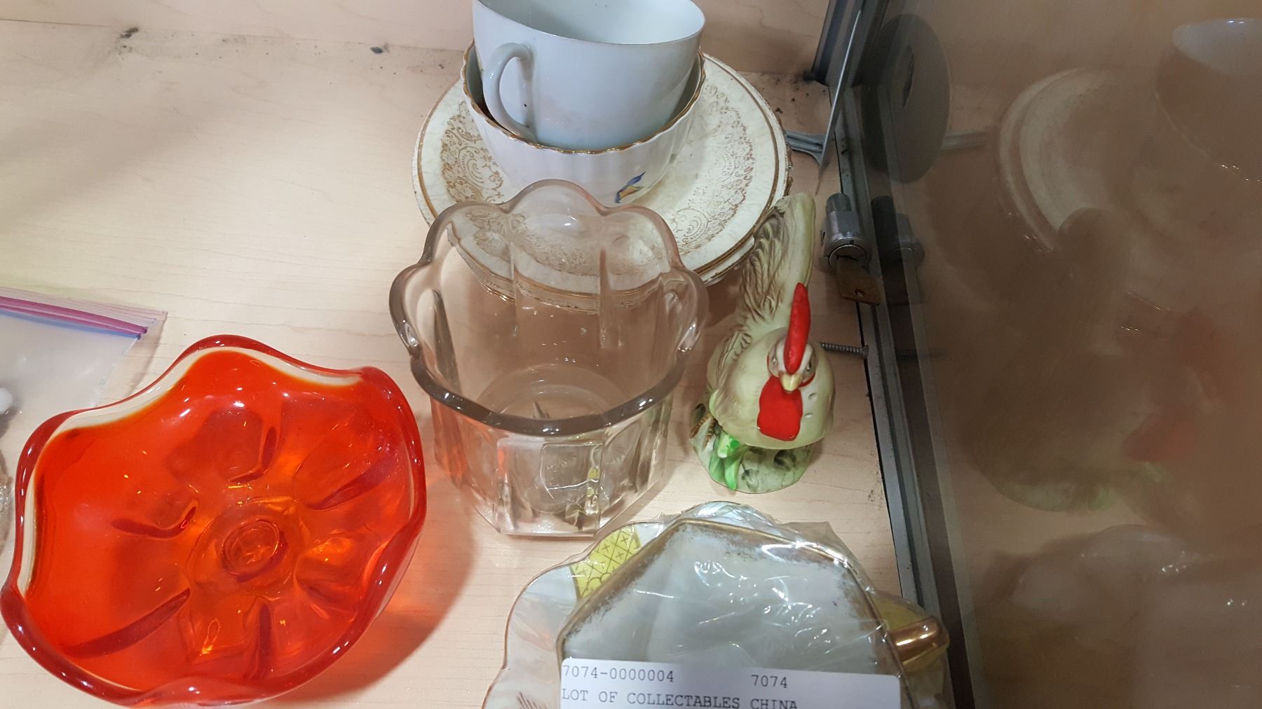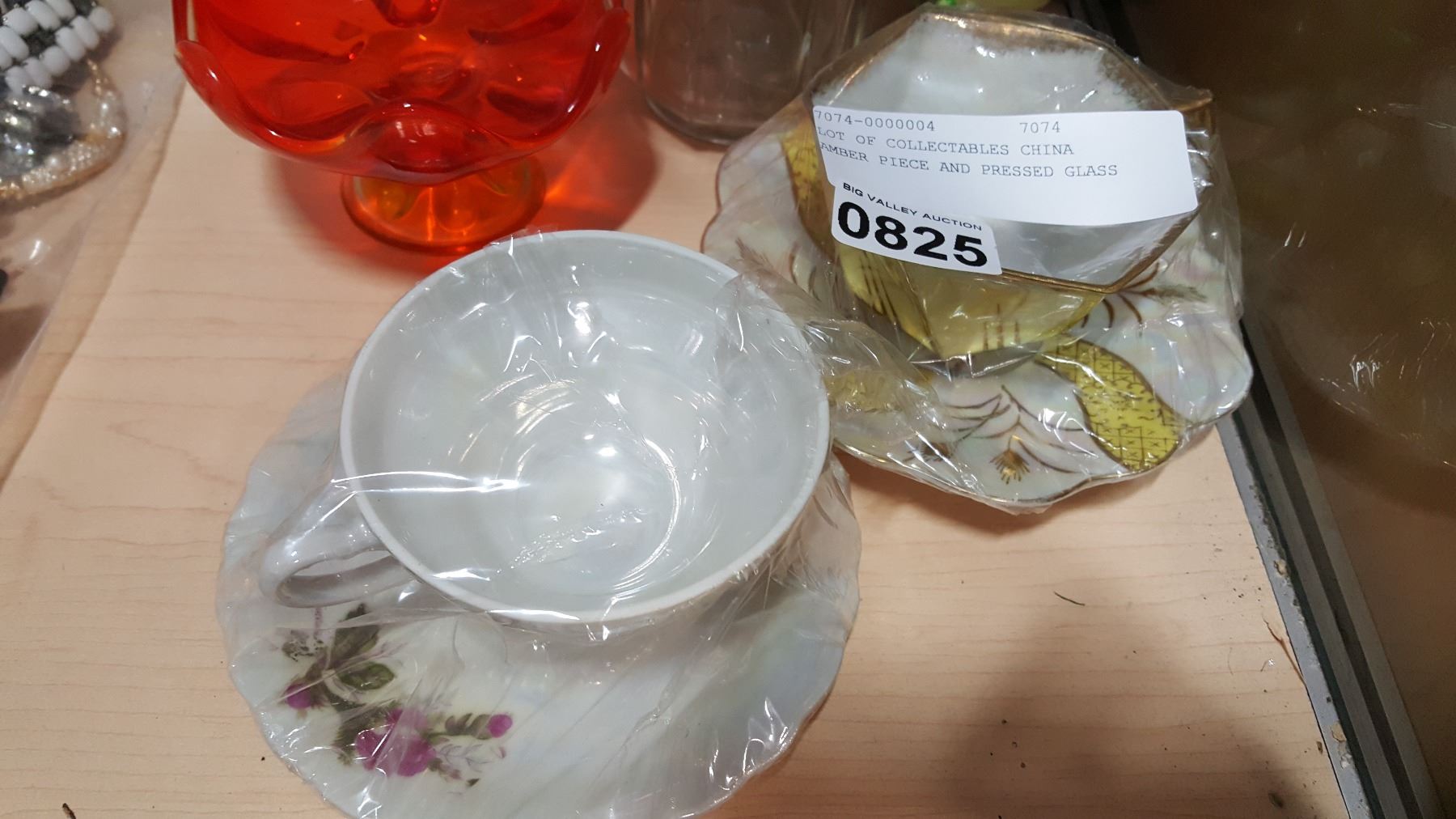 LOT OF COLLECTABLES CHINA AMBER PIECE AND PRESSED GLASS