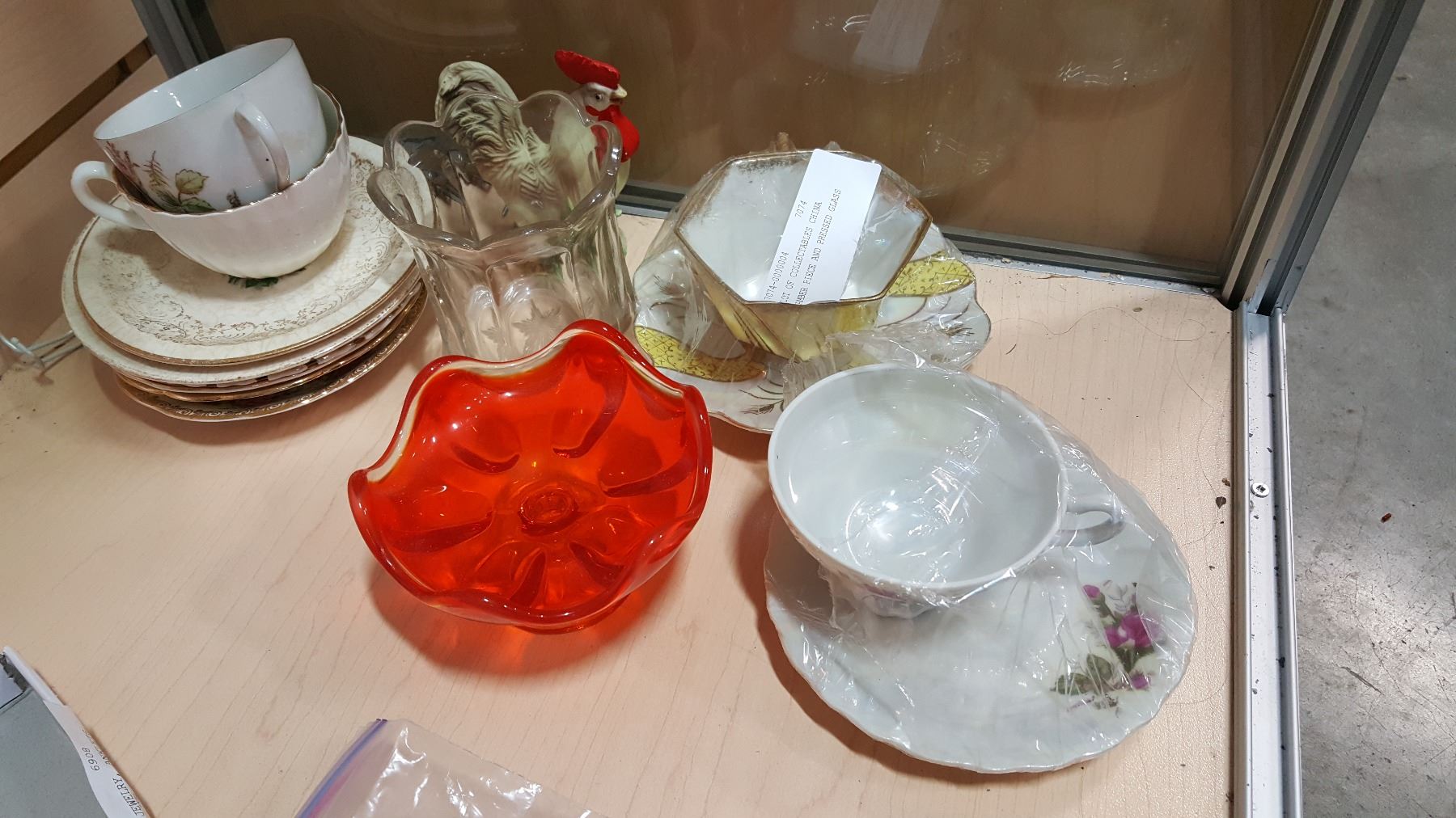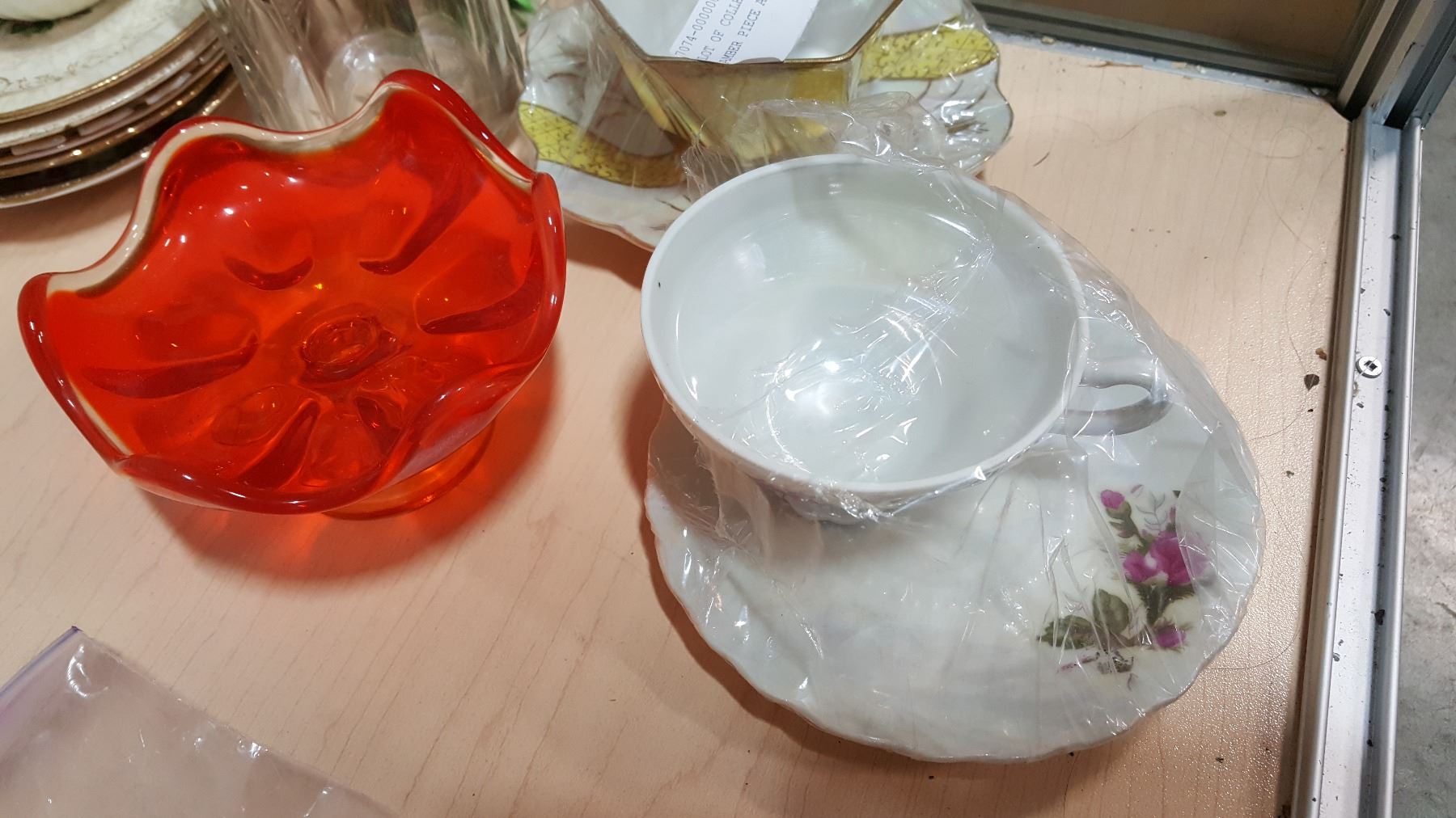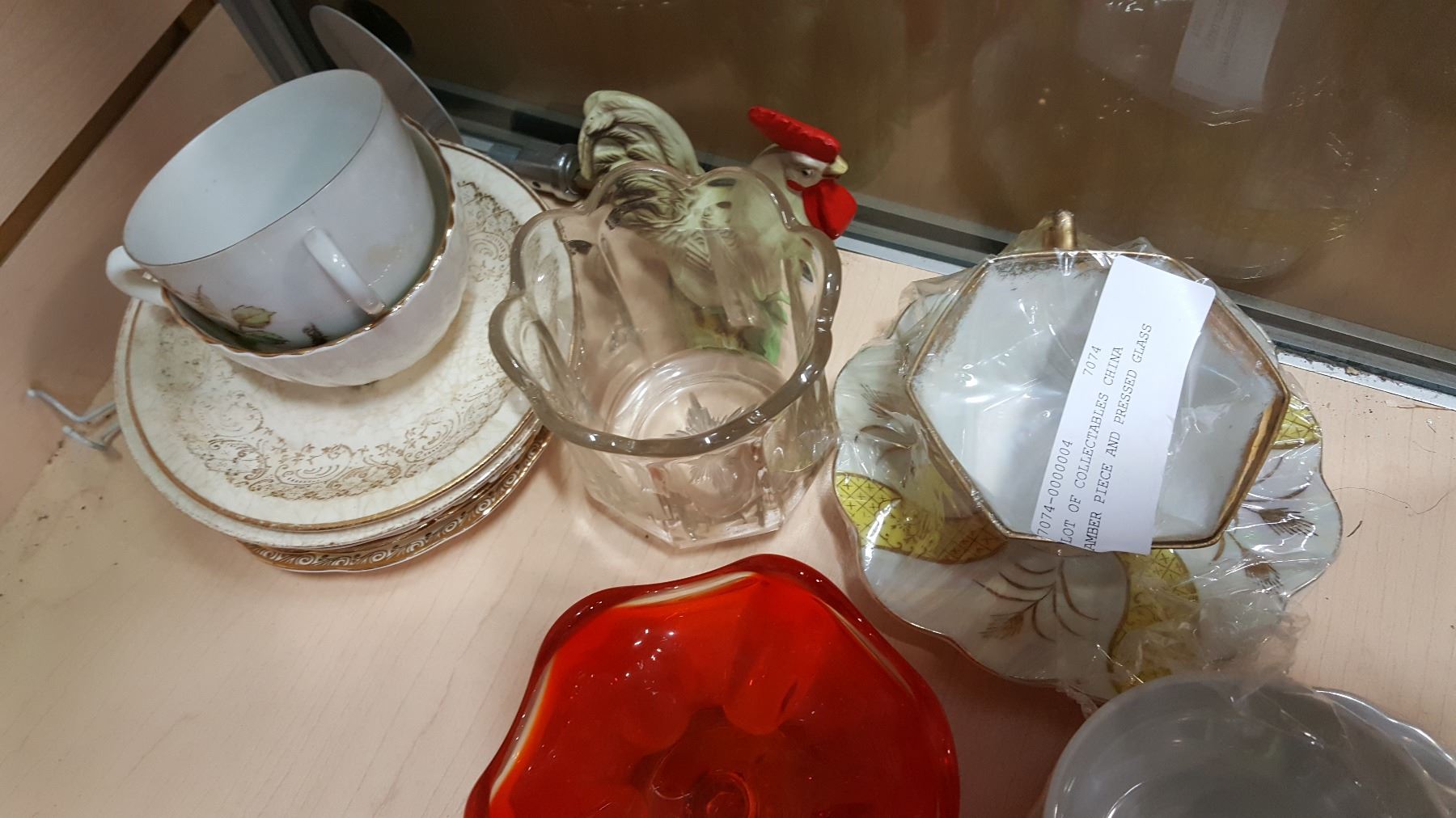 LOT OF COLLECTABLES CHINA AMBER PIECE AND PRESSED GLASS