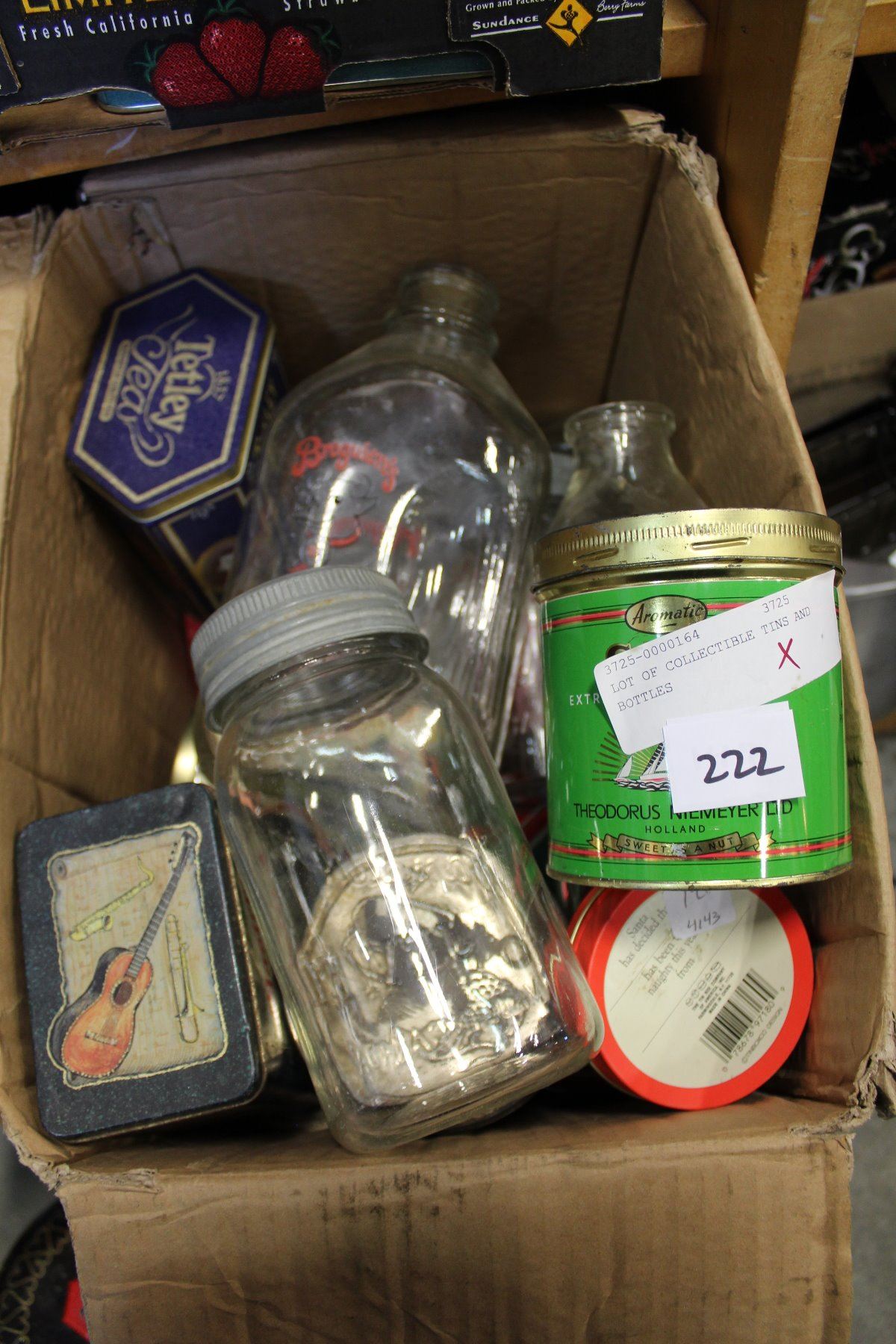 LOT OF COLLECTIBLE TINS AND BOTTLES