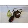 LOT OF COPPER POT AND DUCK DECOY AND BEE CATCHER