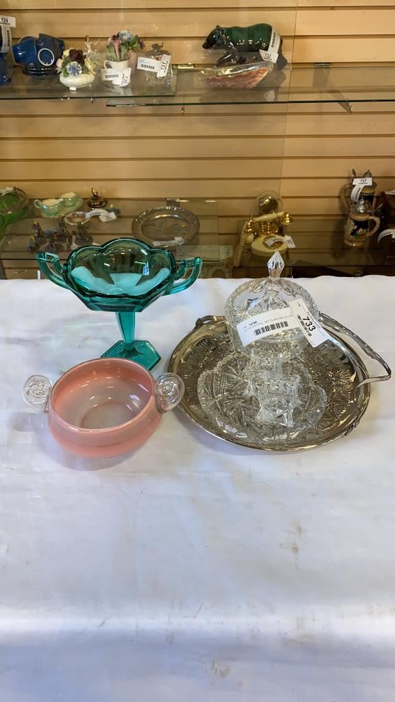 LOT OF CRYSTAL, ART GLASS AND SILVER PLATE