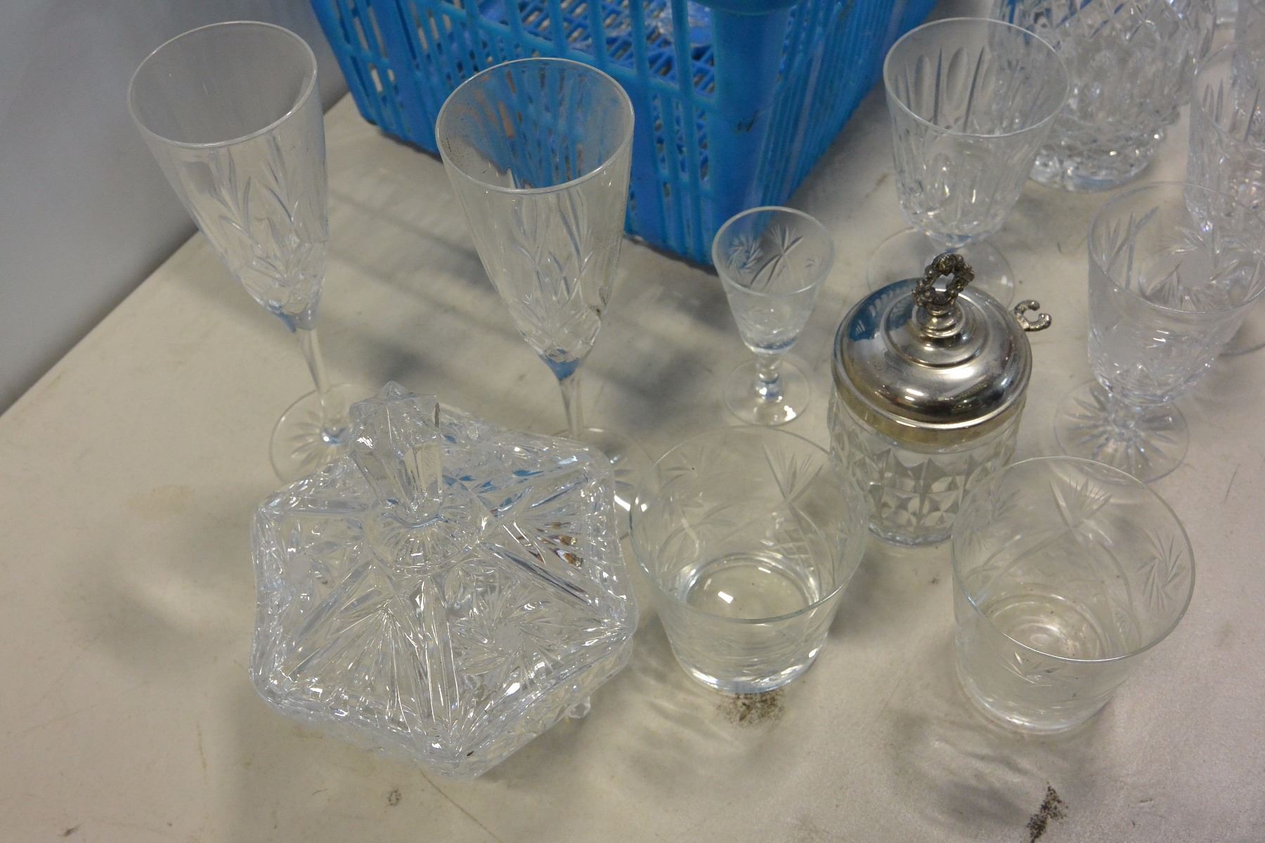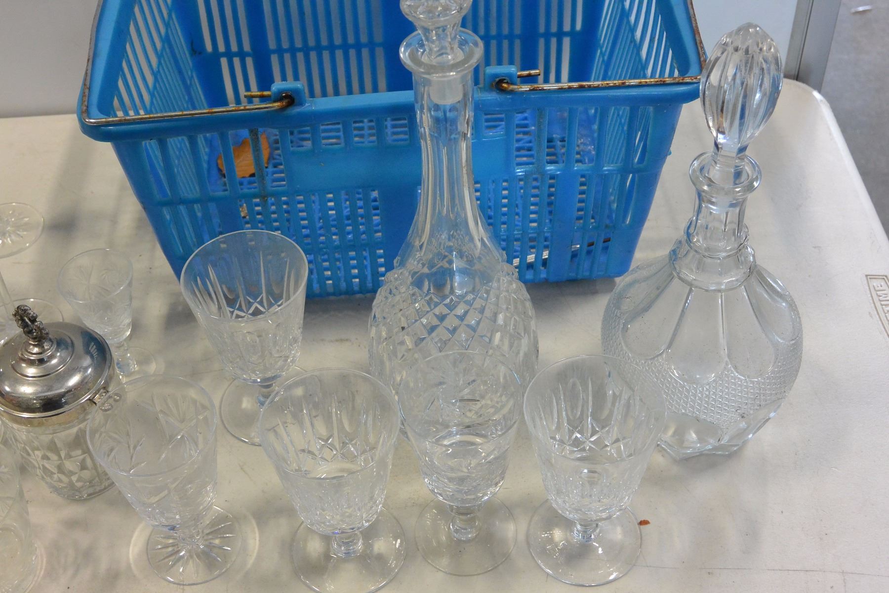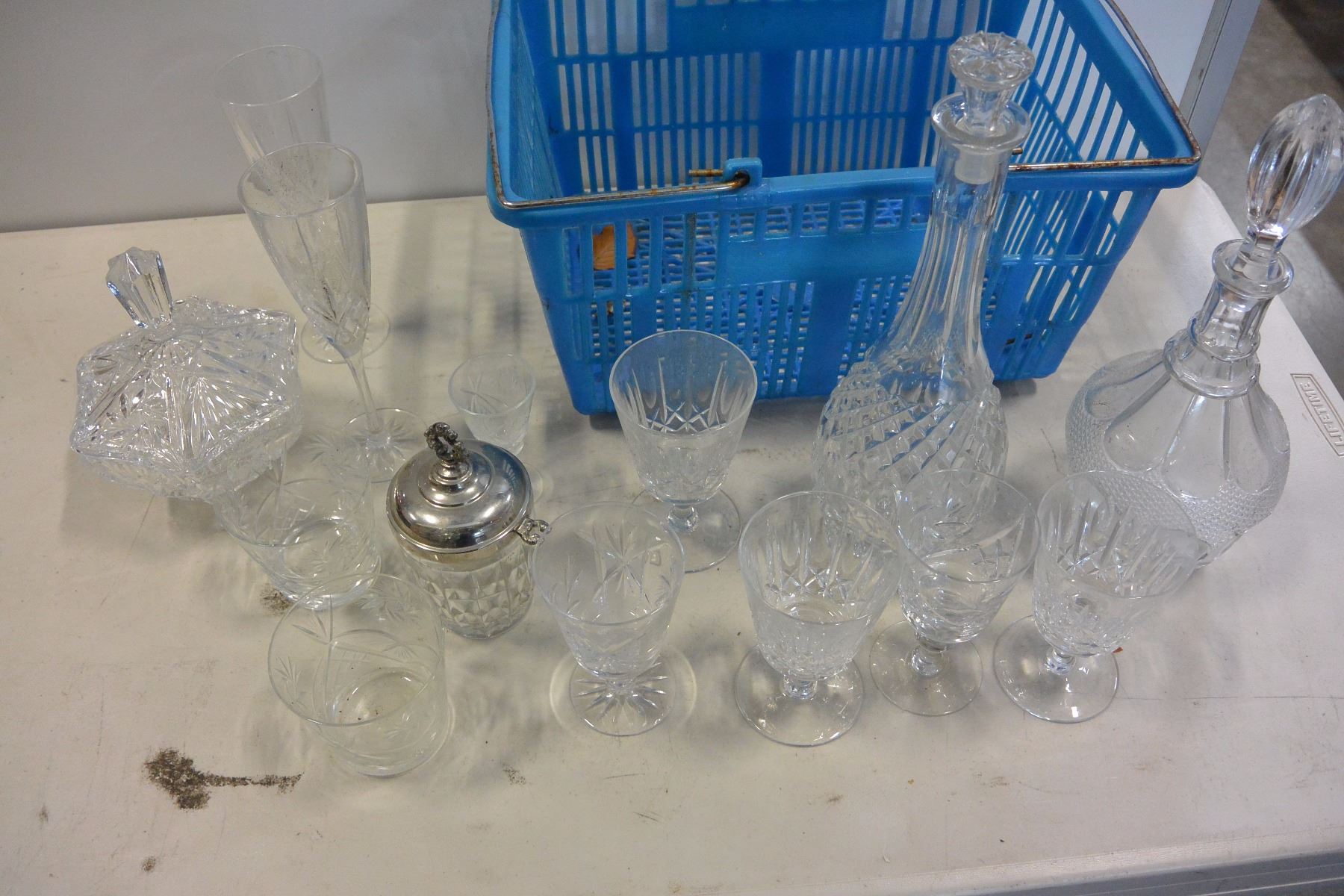 LOT OF CRYSTAL DECANTERS AND GLASSES AND DISHES