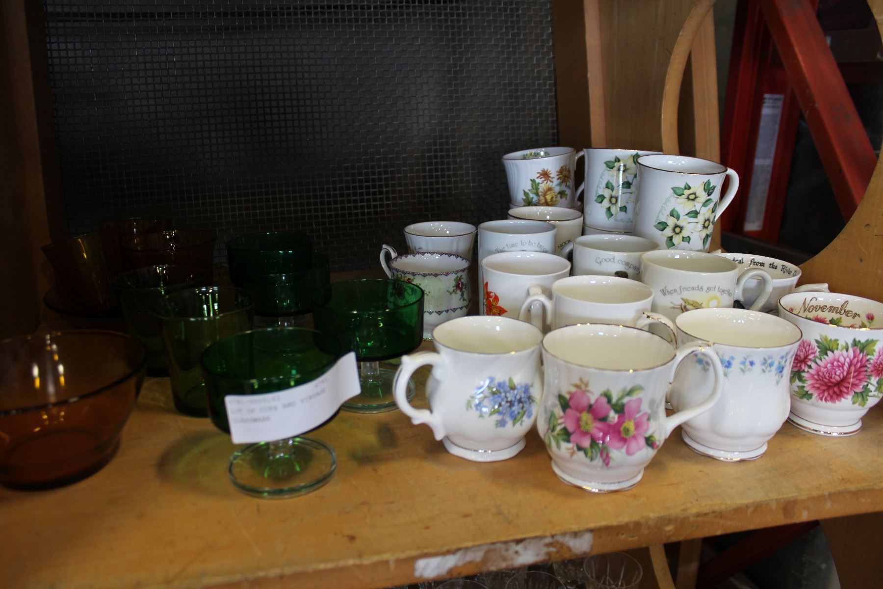 LOT OF CUPS AND VINTAGE GLASSWARE