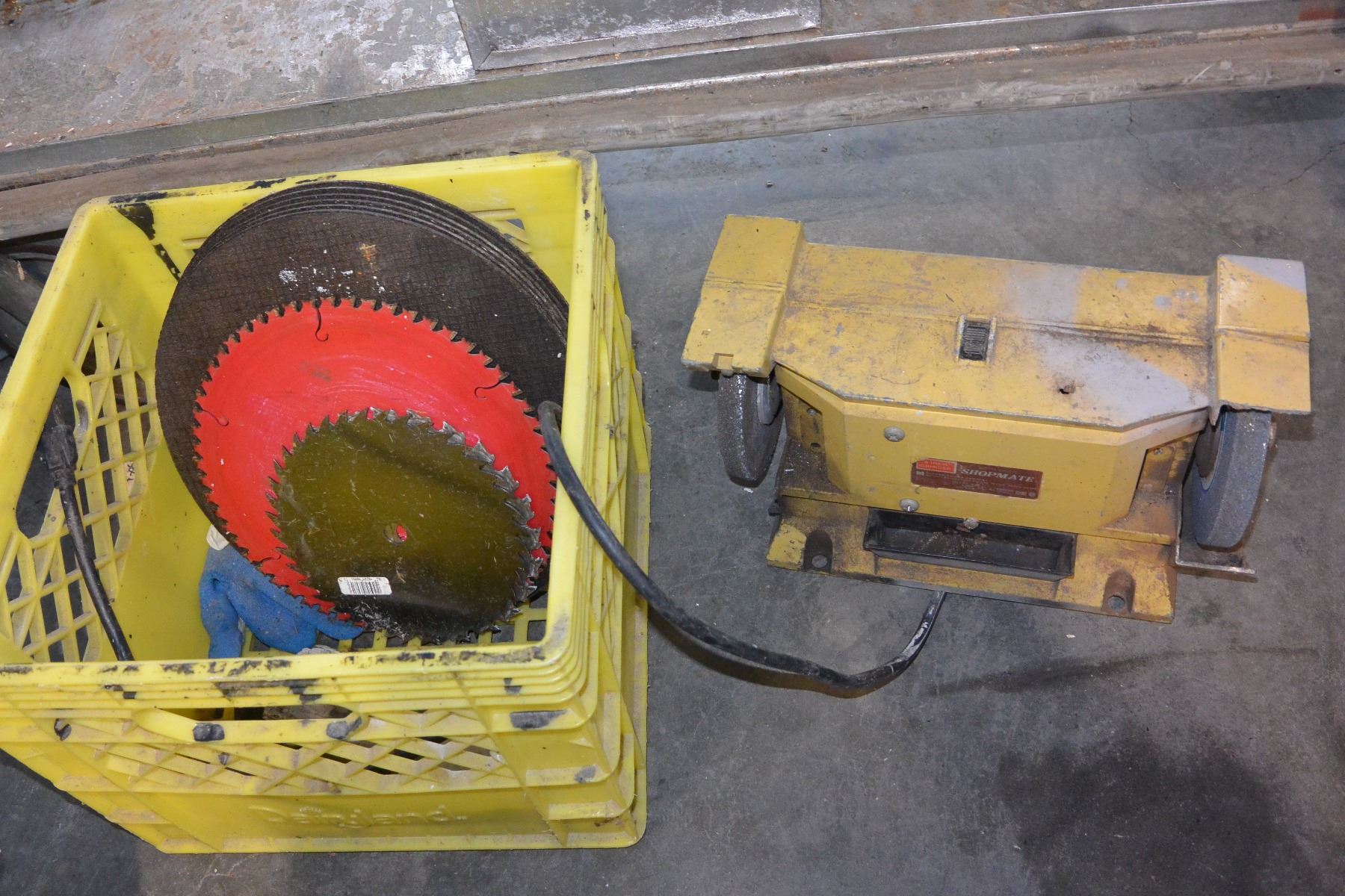 LOT OF CUT OFF DISCS SAWBLADES AND SIX INCH GRINDER