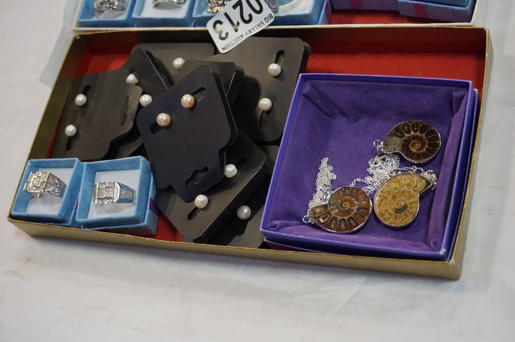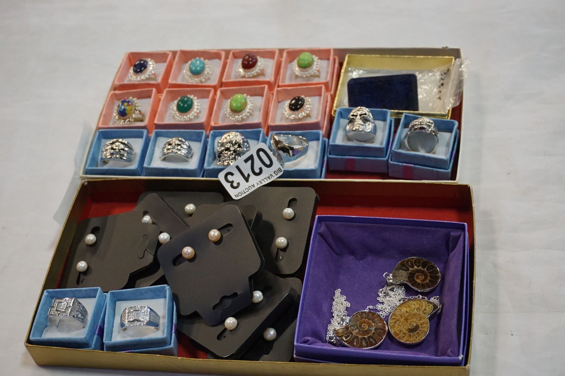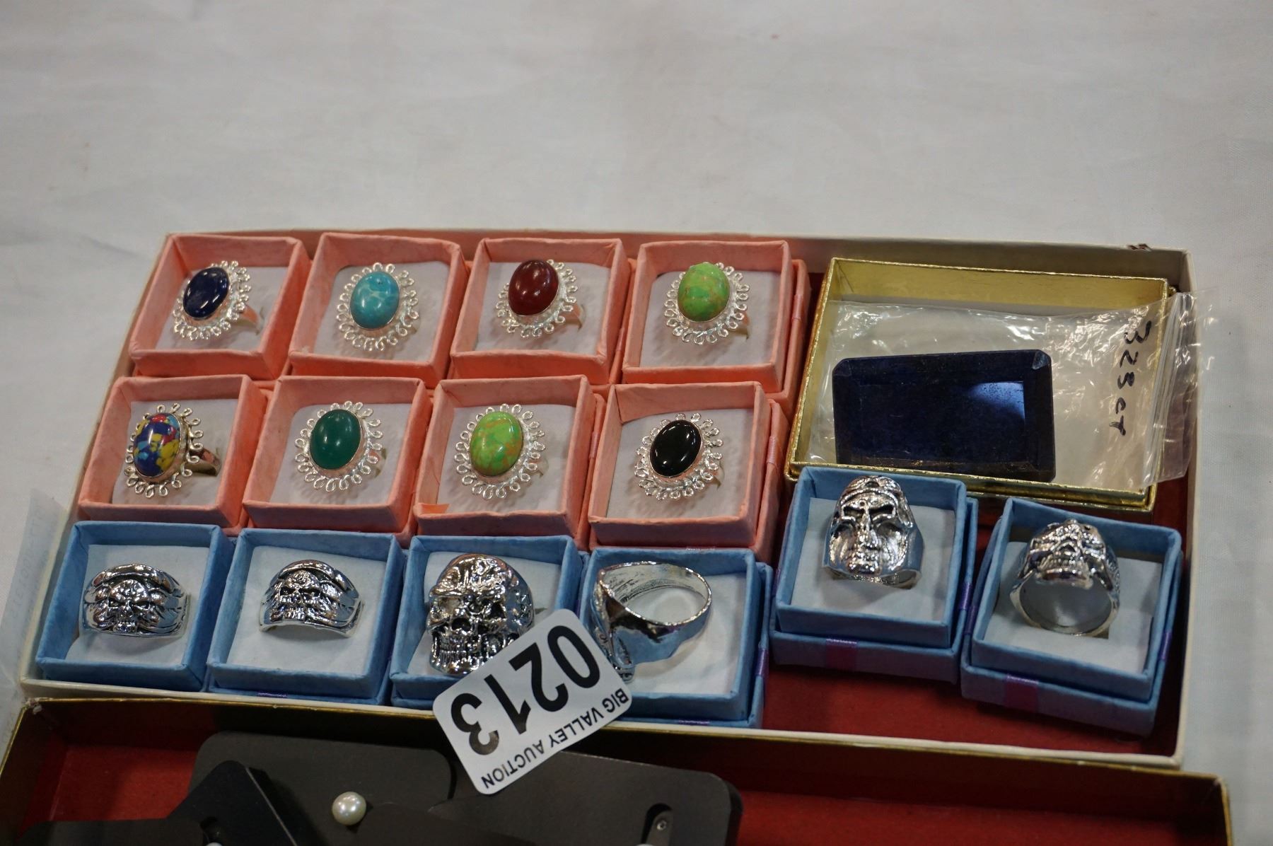 LOT OF DINNER RINGS AND SEMI-PRECIOUS STONE W/ ERRINGS AND NECKLACES