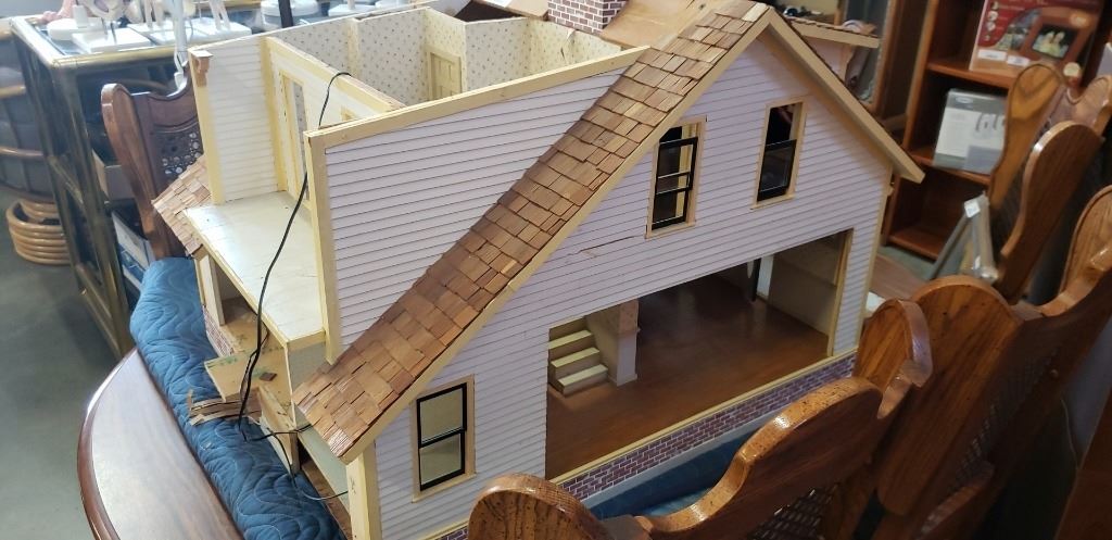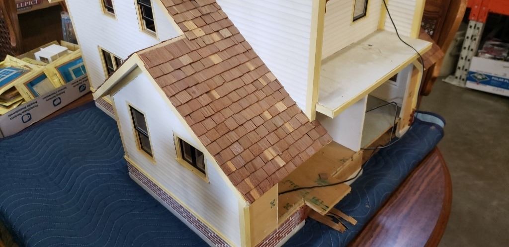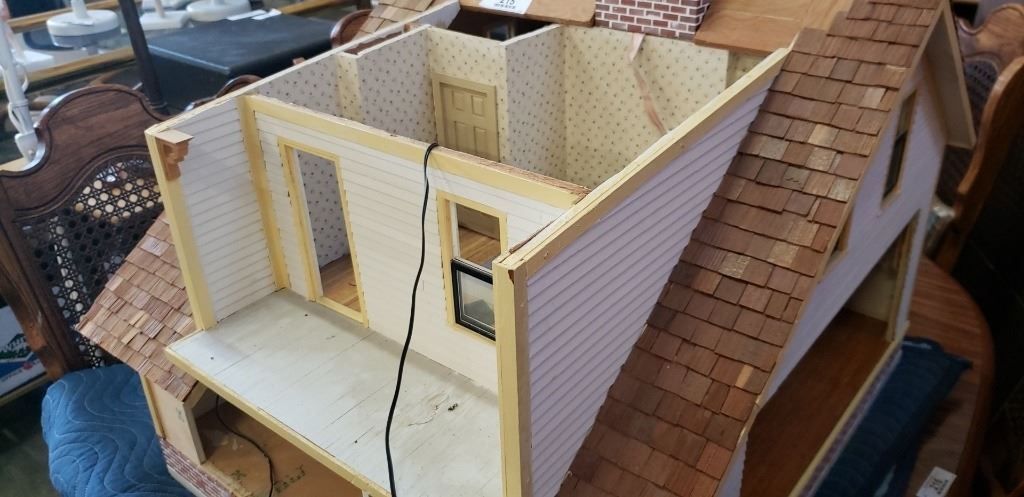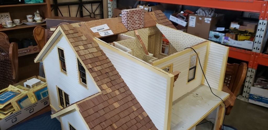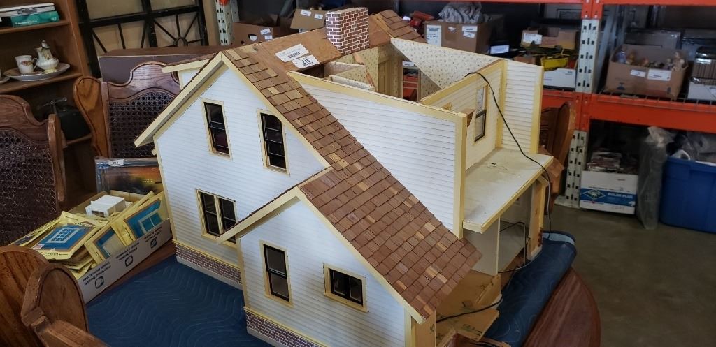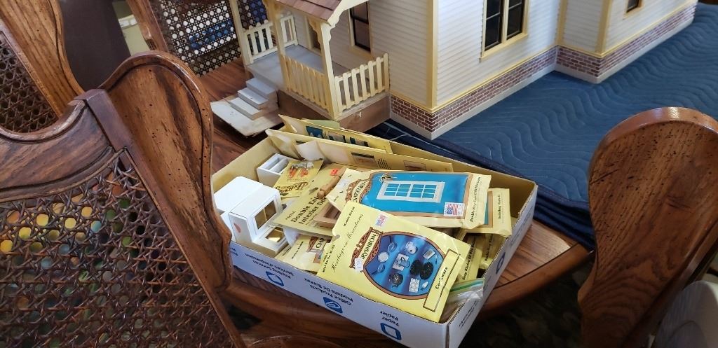 LOT OF DOLL HOUSE WINDOW AND DOOR KITS AND DOLL HOUSE - APPROX 2 FOOT BY 3 FOOT