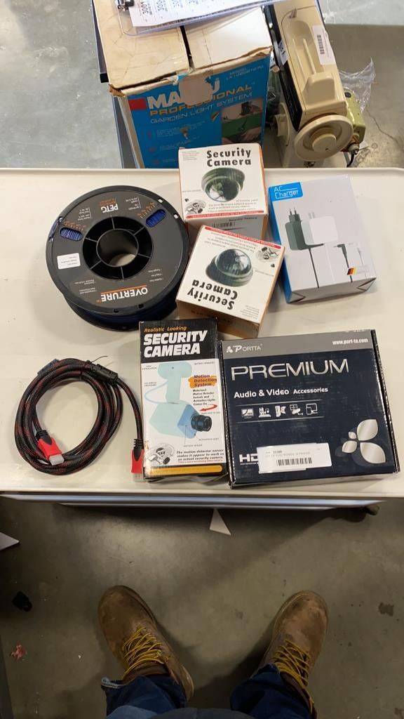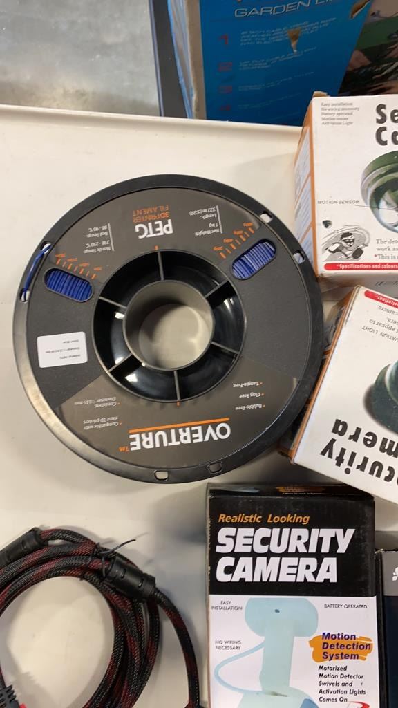 LOT OF ELECTRONICS, 32 PRINTER FILAMENT, DUMMY SECURITY CAMERAS