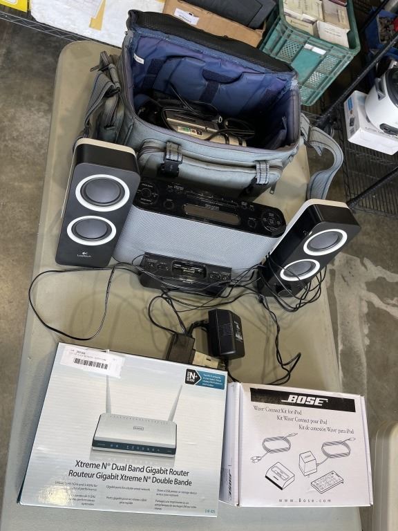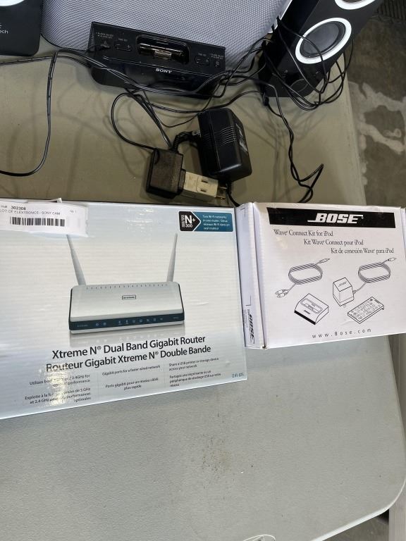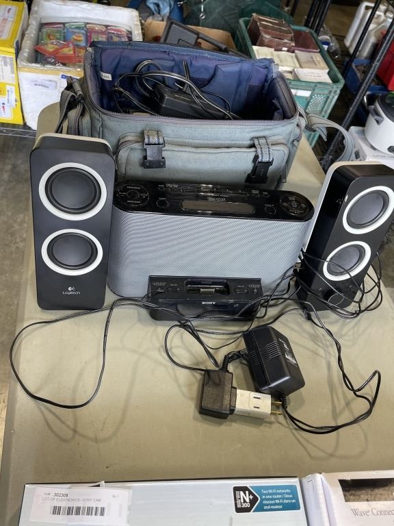 LOT OF ELEXTRONICS - SONY CAM CORDER, SONY AND BOS IPOD DOCKS, COMPUTER SPEAKERS, D-LINK DUAL BAND ROUTER