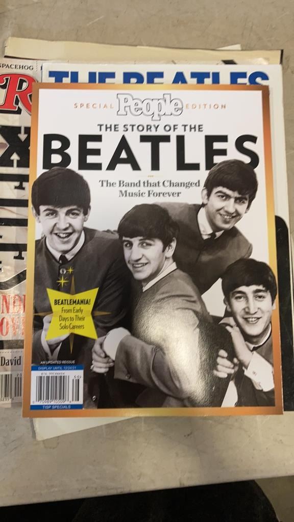 LOT OF ELVIS AND BEATLES MAGAZINES, BEATLES CLOCK AND RCMP CLOCK
