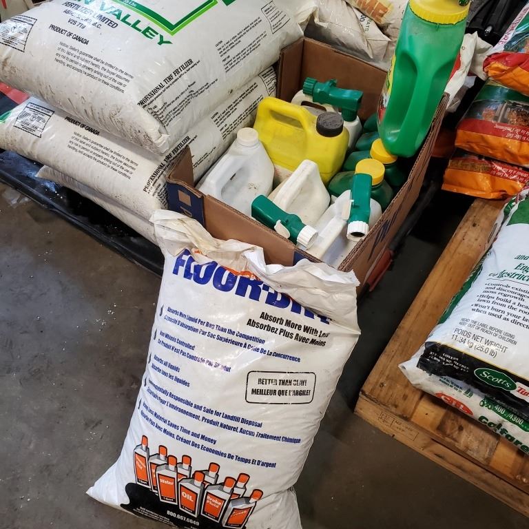LOT OF FERTIZER, SEED AND FLOOR DRY ABSORBANTR