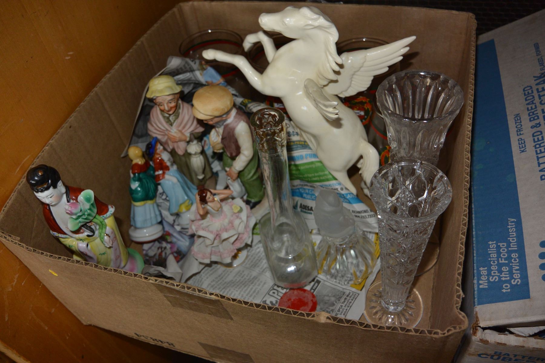 LOT OF FIGURES GLASS BEER MUGS AND VASES