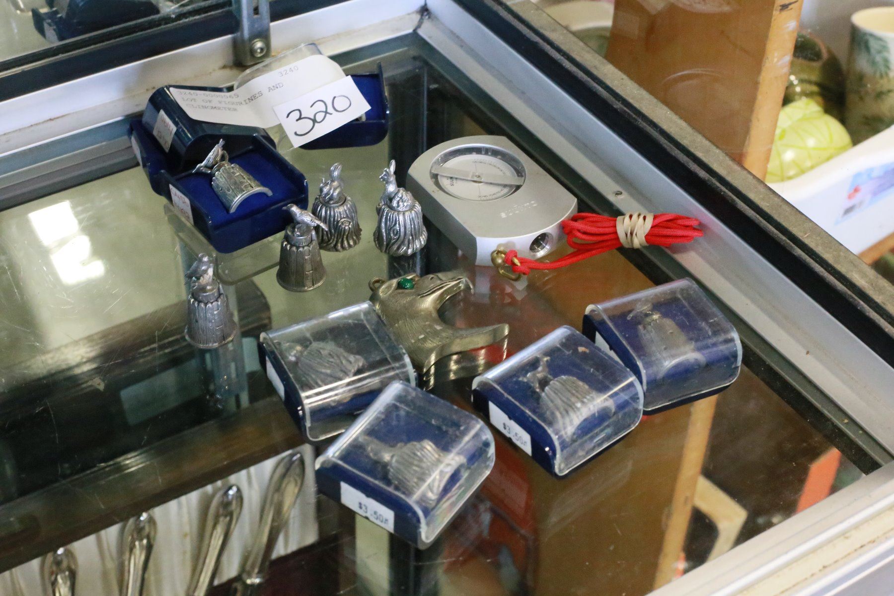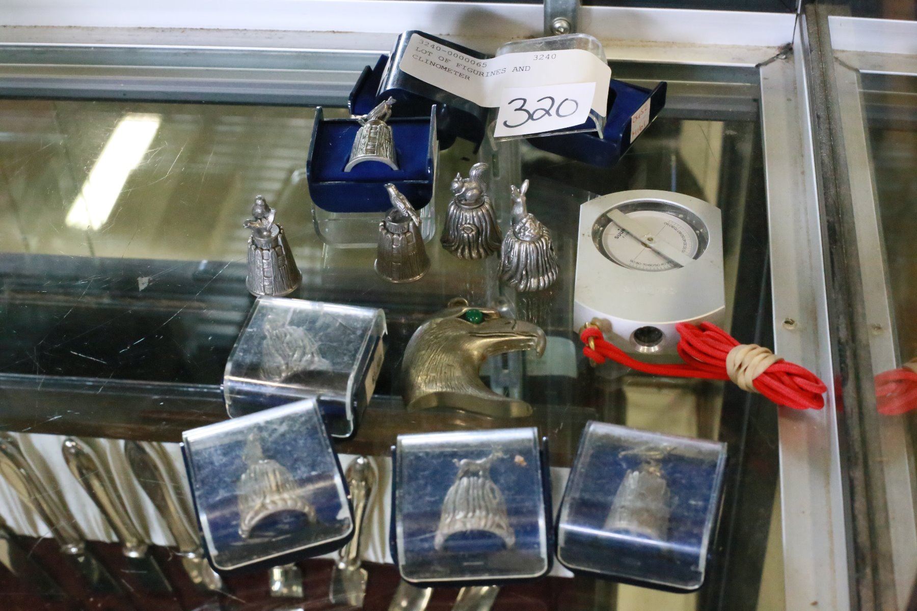 LOT OF FIGURINES AND CLINOMETER