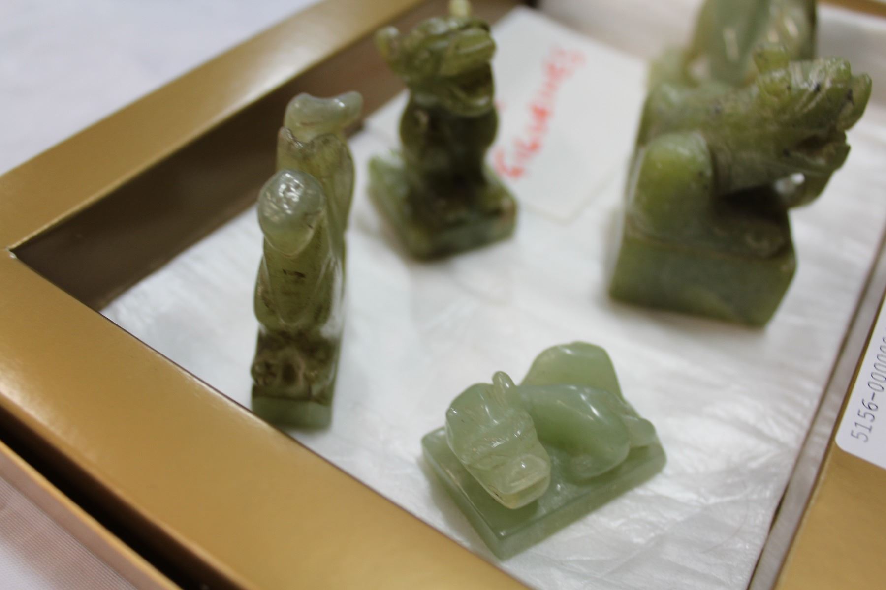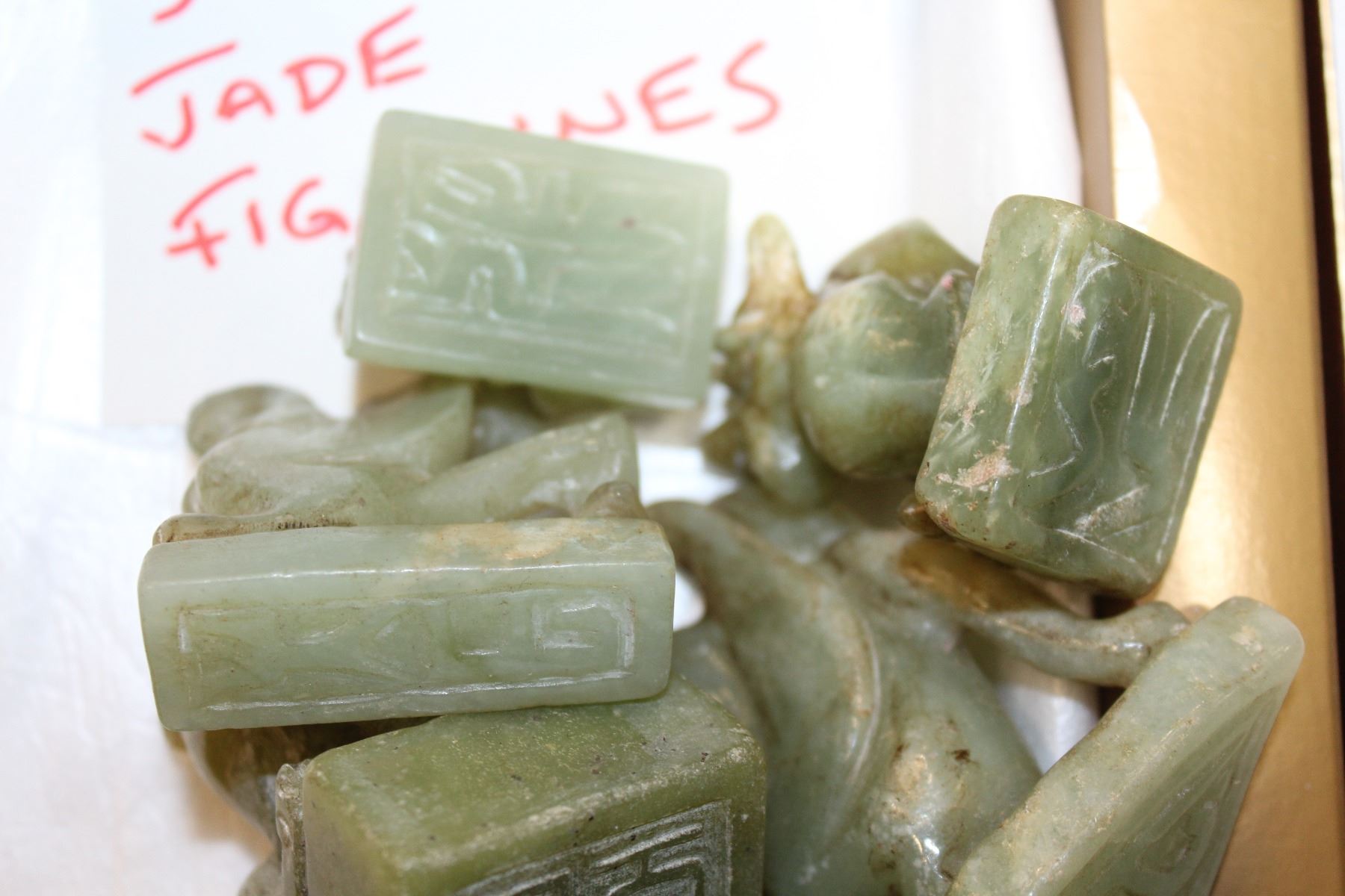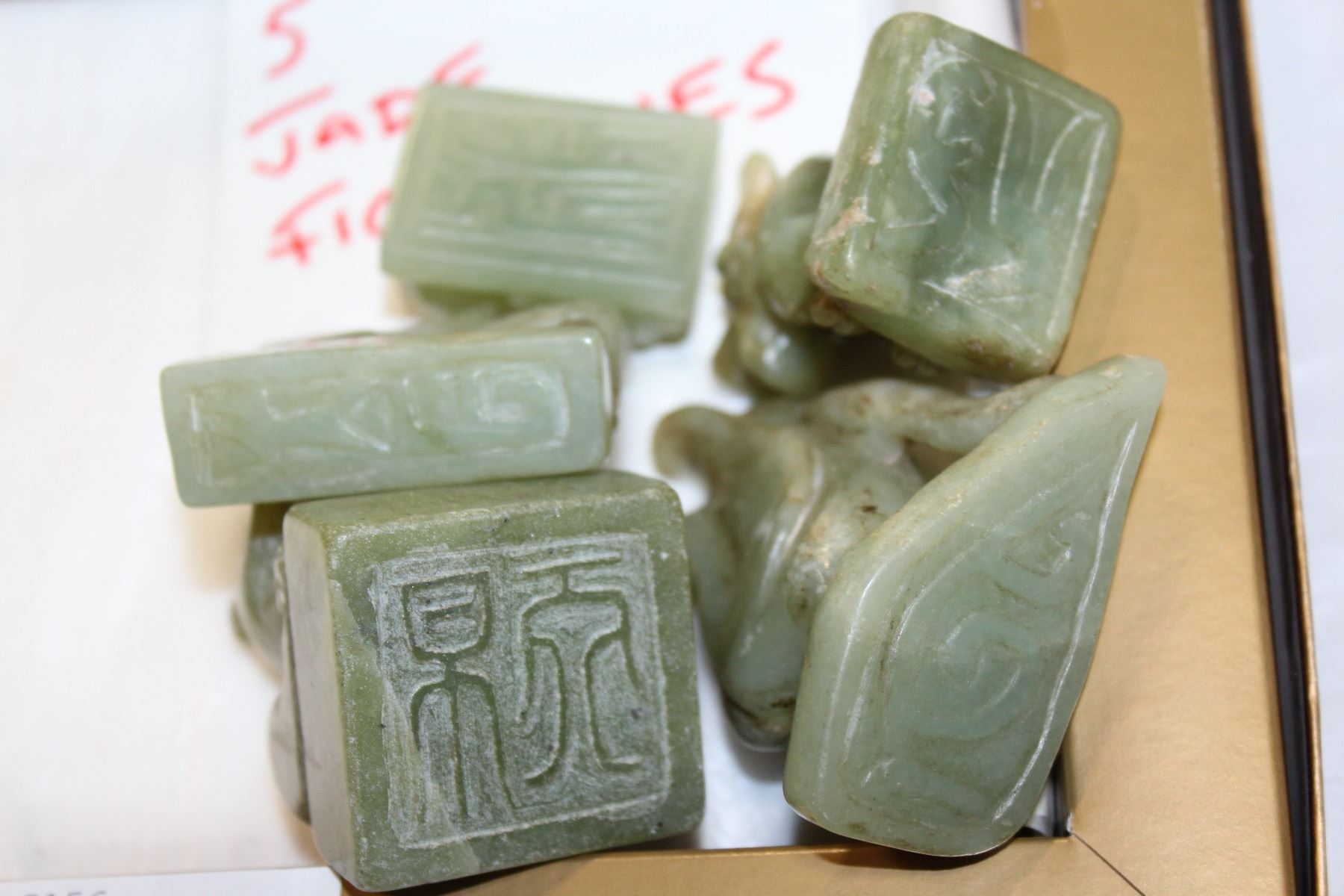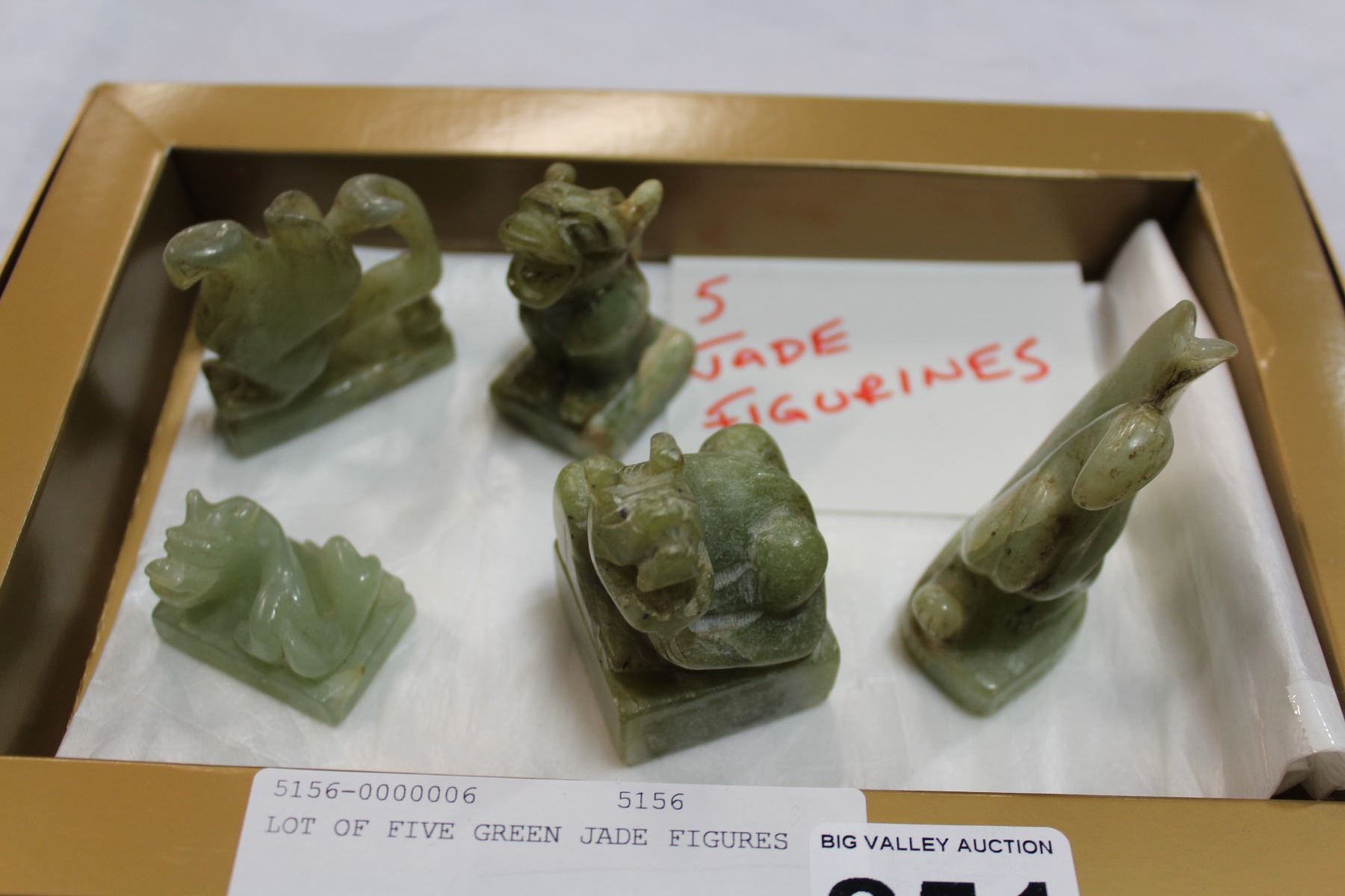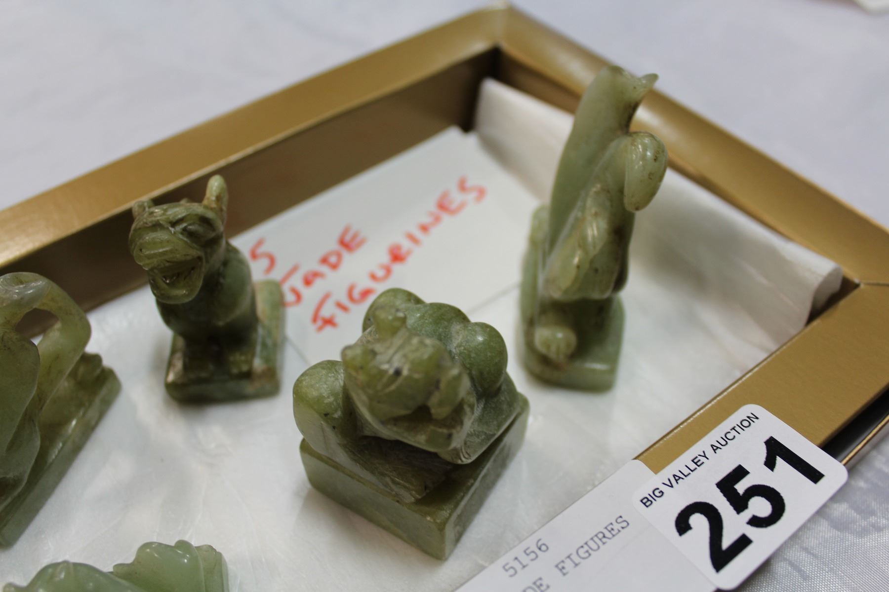 LOT OF FIVE GREEN JADE FIGURES