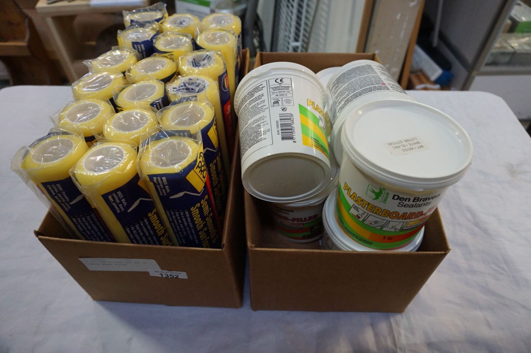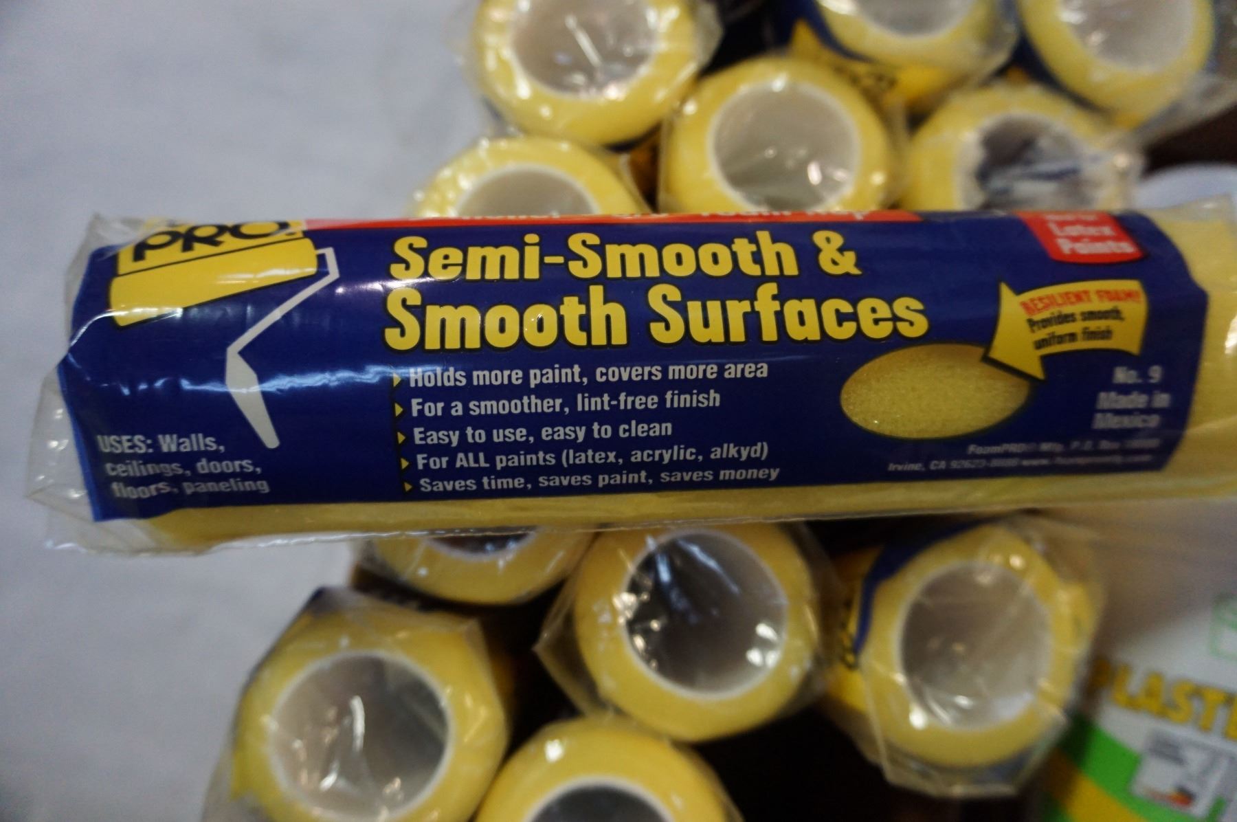 LOT OF FOAM ROLLERS AND BOX OF PLASTER BOARD FILLER
