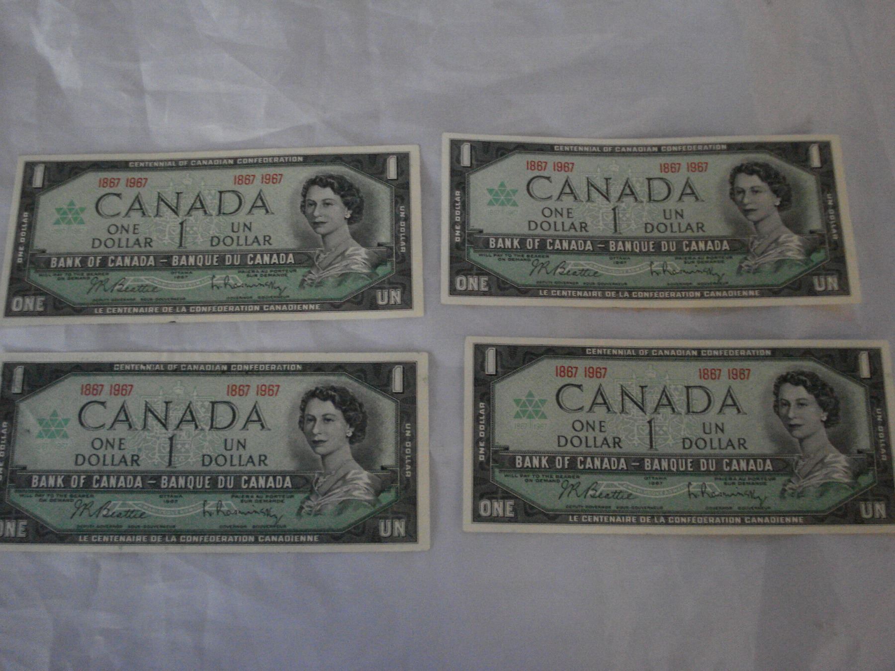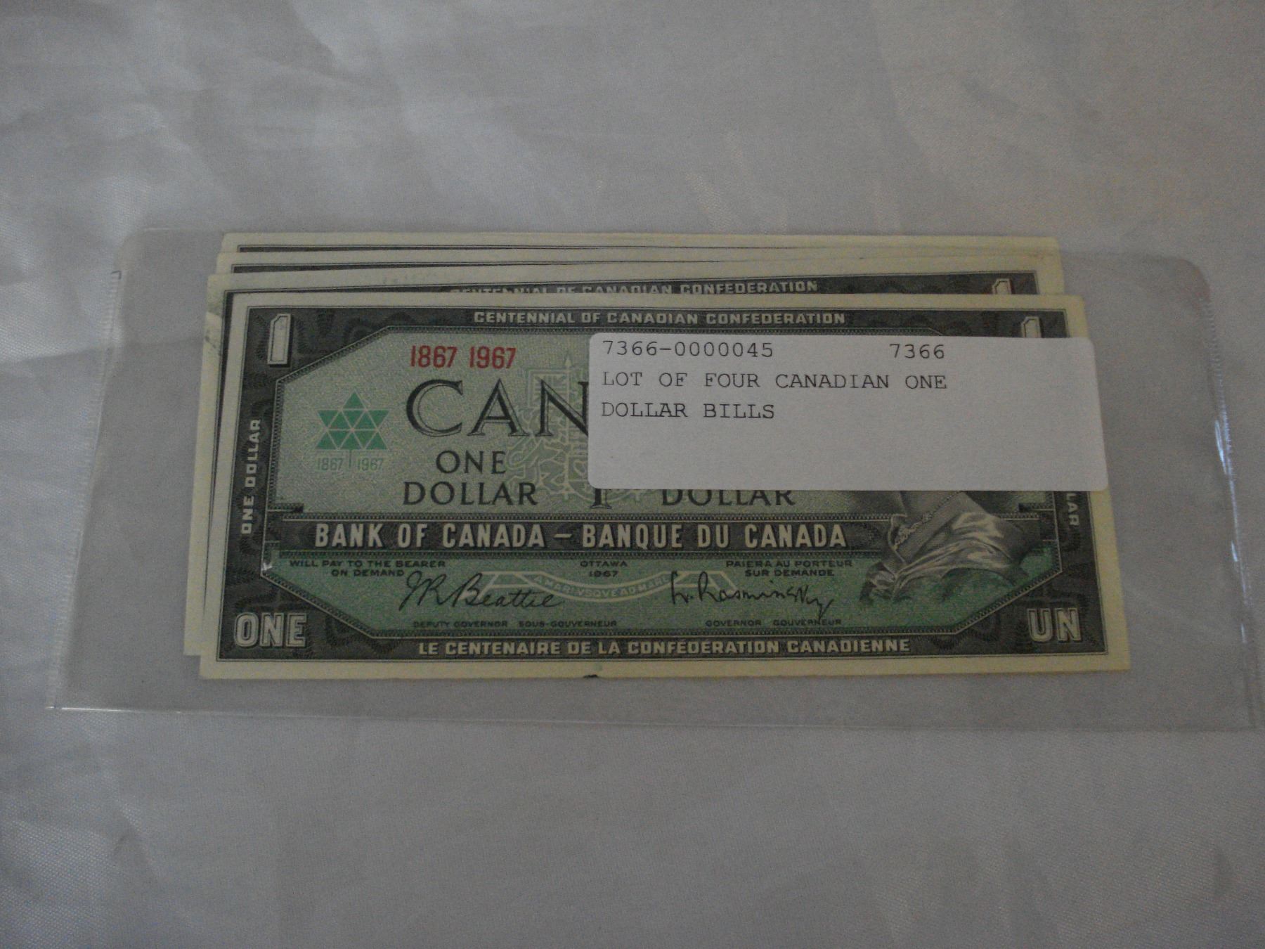 LOT OF FOUR CANADIAN ONE DOLLAR BILLS