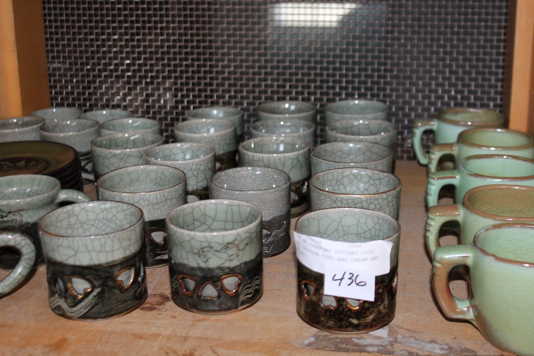 LOT OF FRANKOMA POTTERY CUPS AND EASTERN CUPS AND CREAM AND SUGARS