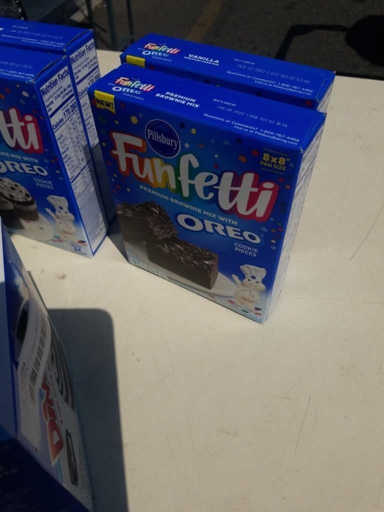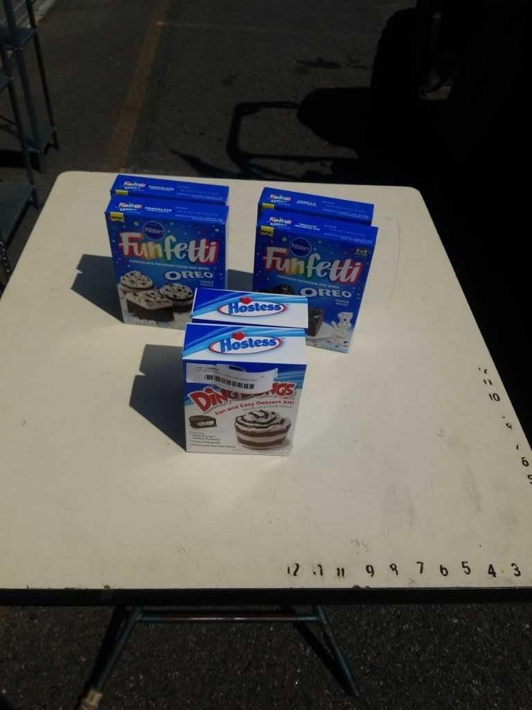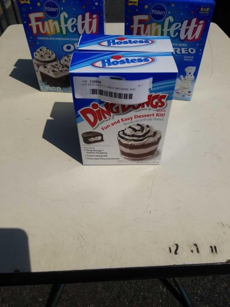 LOT OF FUNFETTI OREO BROWNIE AND CAKE MIX AND HOSTESS TWINKIES AND DING DONG DESSERT MIX - BB 2022