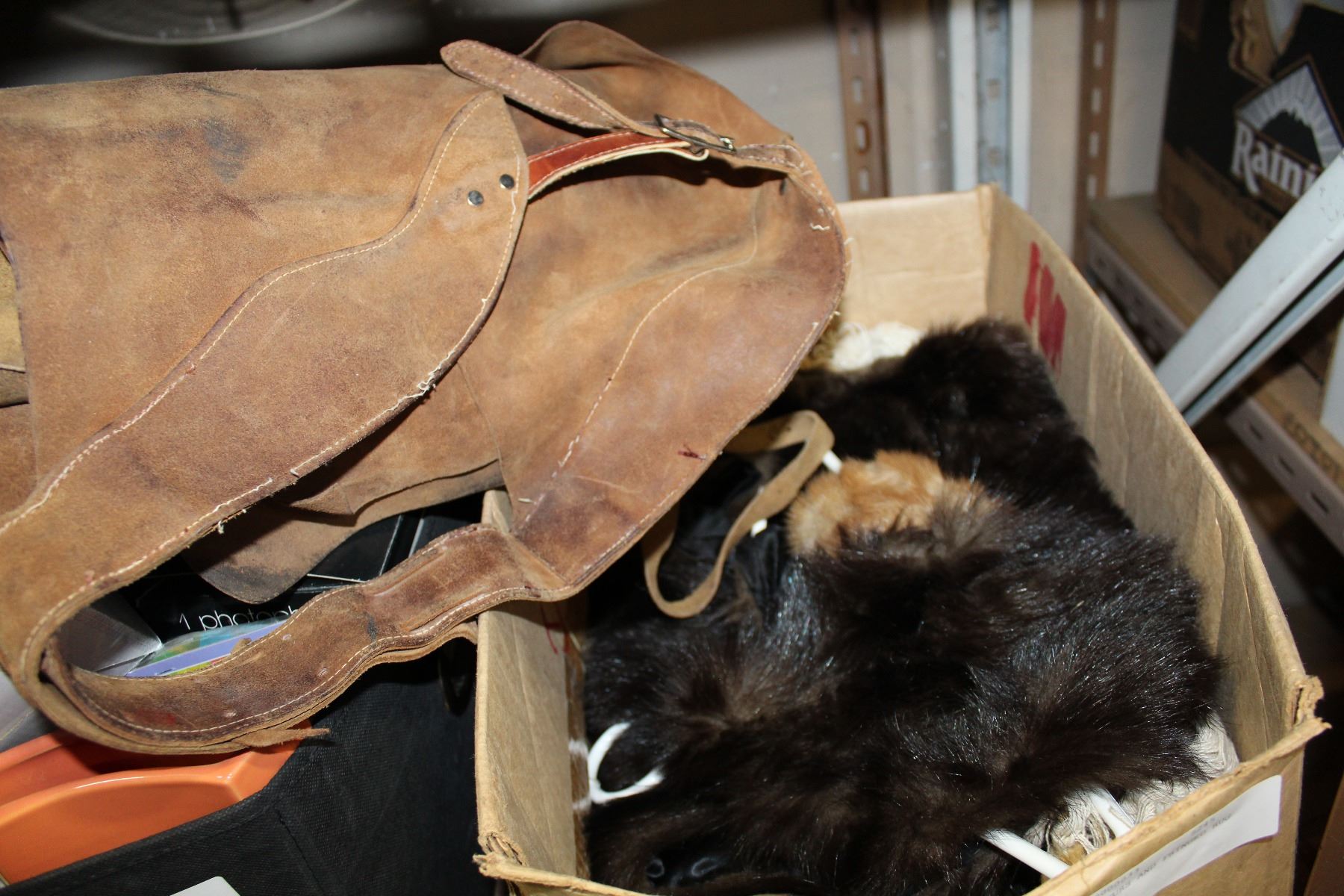 LOT OF FURS AND FRINGED RUG AND CHAPS