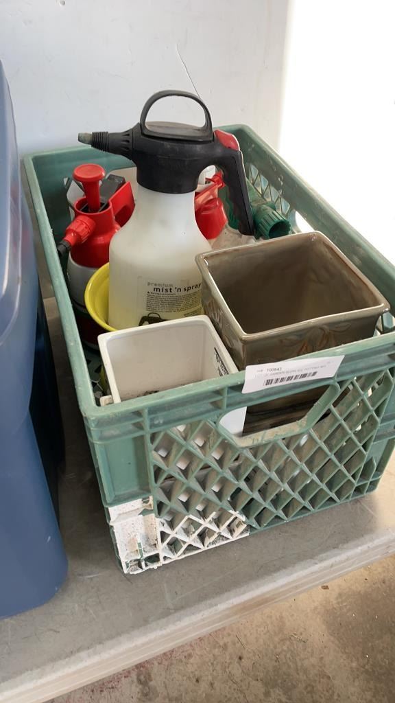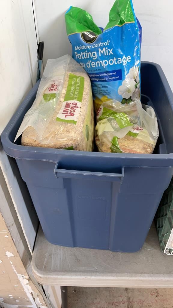 LOT OF GARDEN SUPPLIES, POTTING MIX, GARDEN BEDDING, SPRAYERS AND SMALL PLANTERS