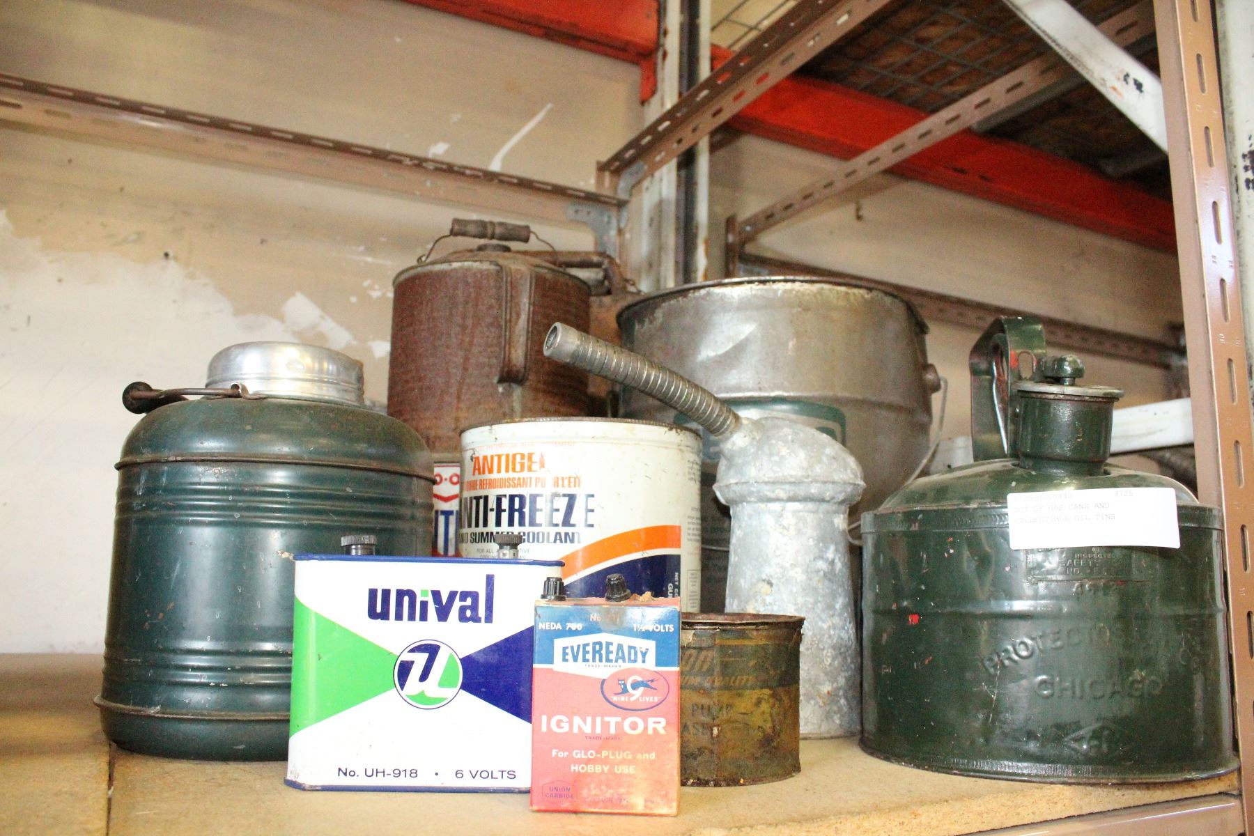 LOT OF GAS CANS AND COLLECTIBLE OIL TINS