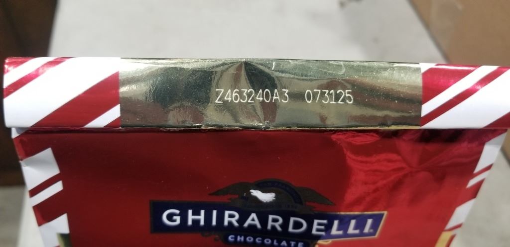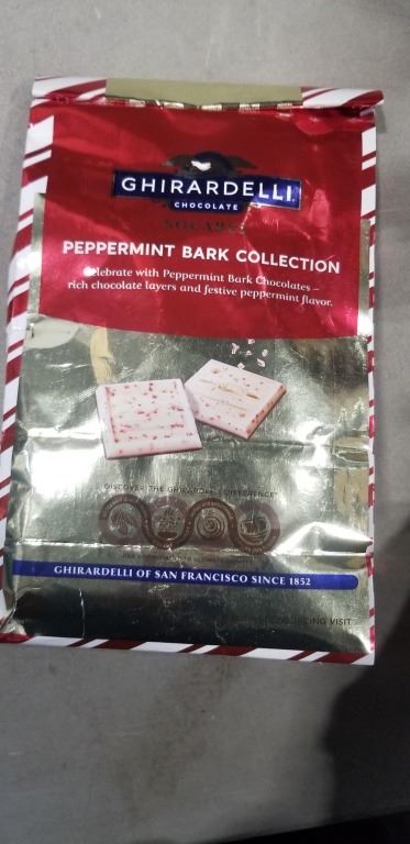 LOT OF GHIRARDELLI PEPPERMINT BARK SQUARES, PAST BB, 07/31/2025