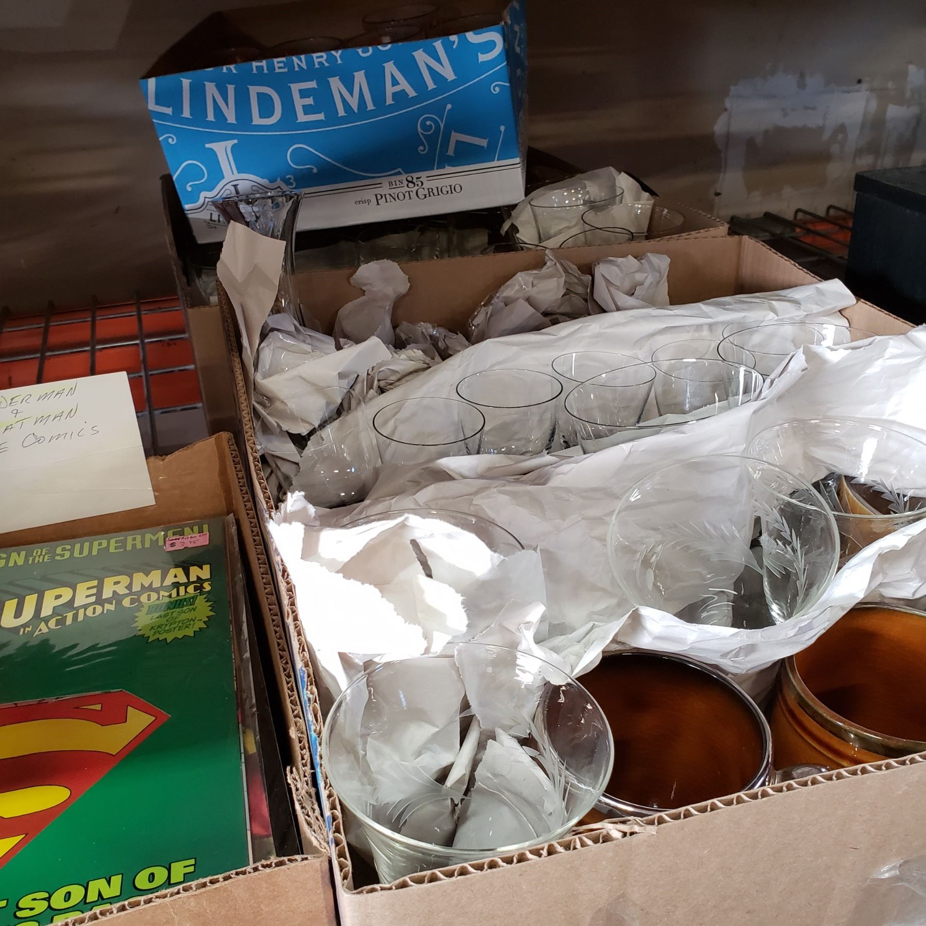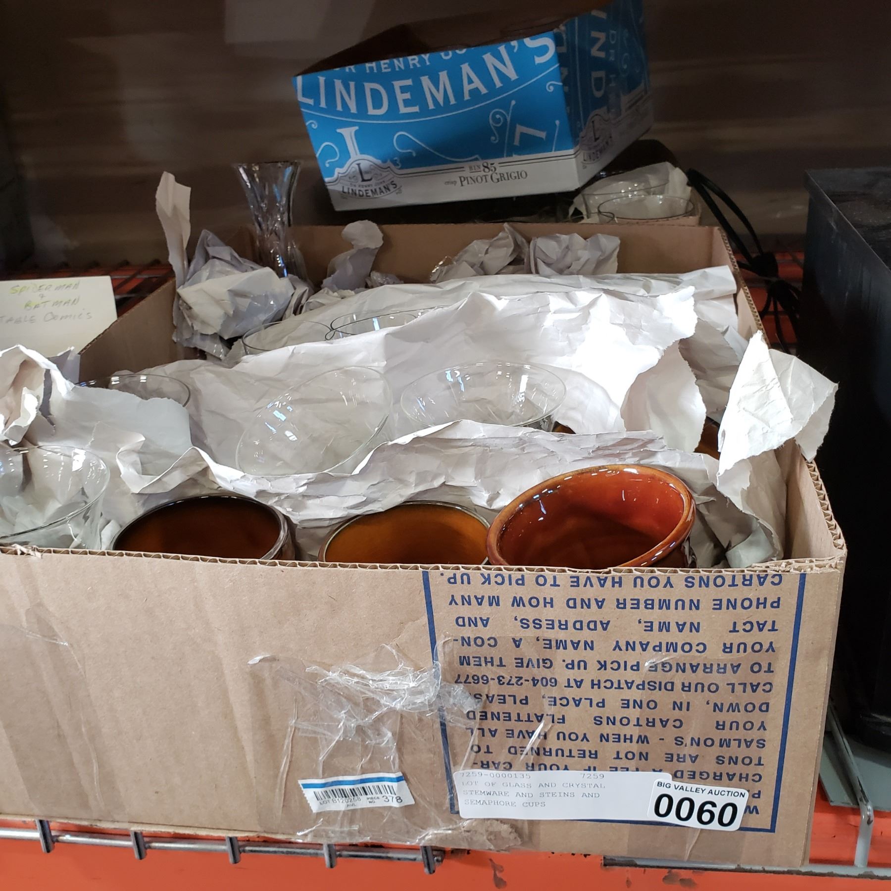 LOT OF GLASS AND CRYSTAL STEMWARE AND STEINS AND SEMAPHORE CUPS