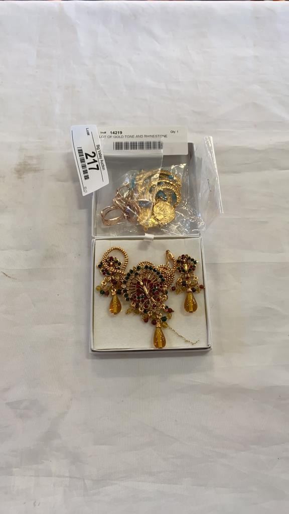 LOT OF GOLD TONE AND RHINESTONE JEWELLERY