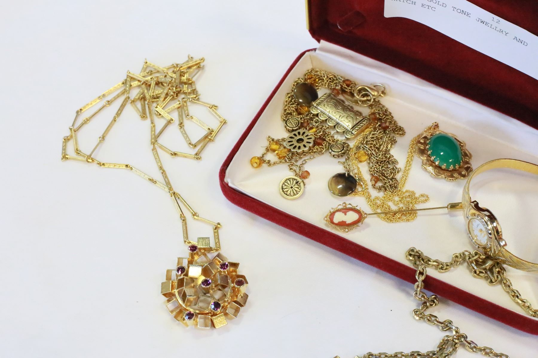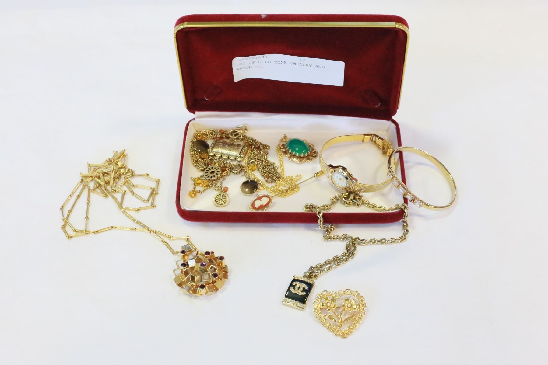 LOT OF GOLD TONE JWELLRY AND WATCH ETC
