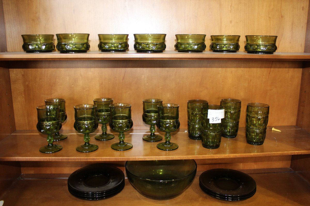 LOT OF GREEN DEPRESSION GLASS WARE