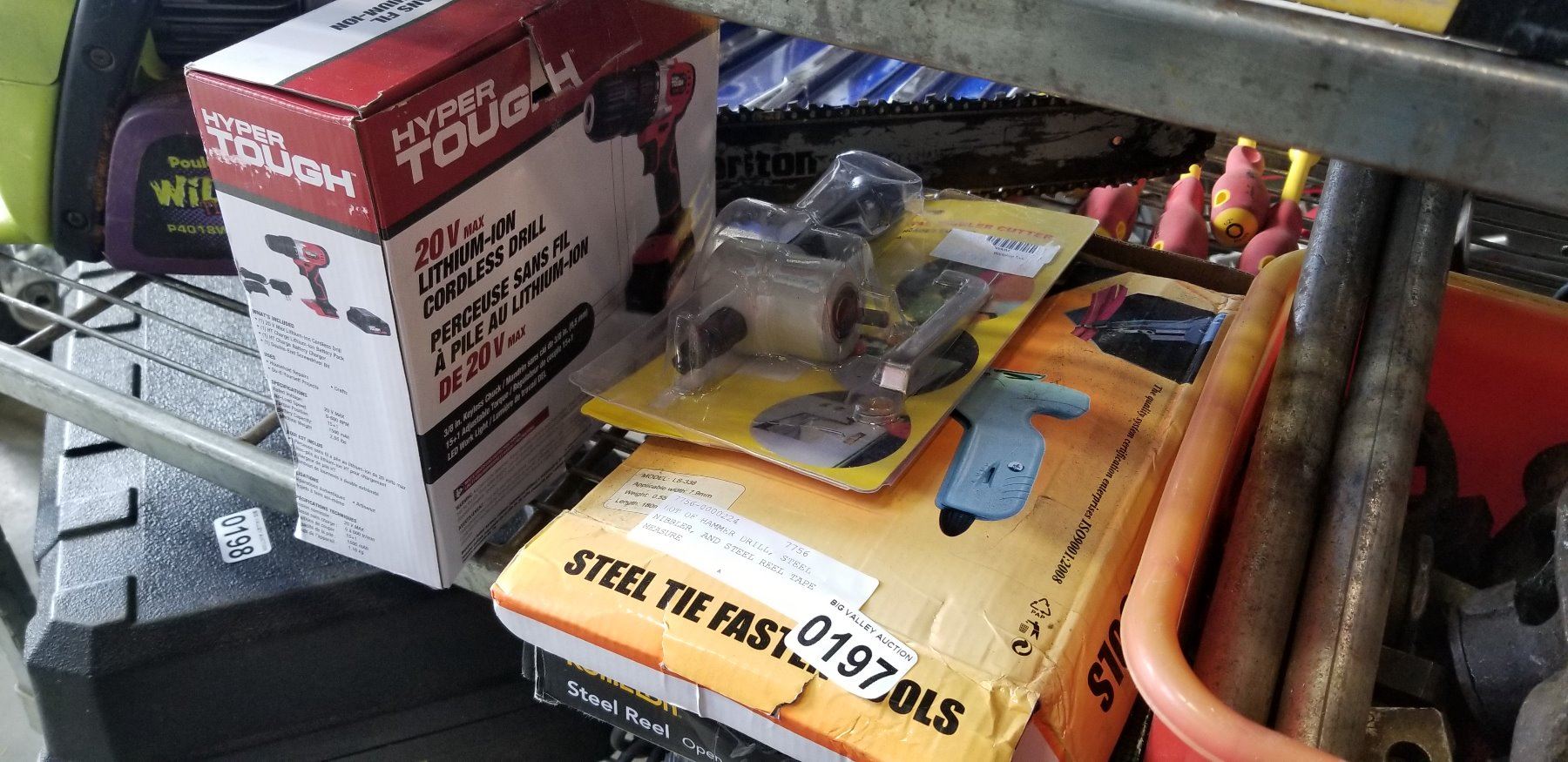 LOT OF HAMMER DRILL, STEEL NIBBLER, AND STEEL REEL TAPE MEASURE