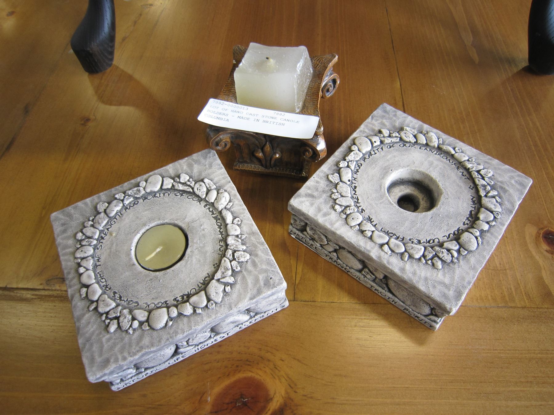 LOT OF HAND CAST STONE CANDLE HOLDERS - MADE IN BRITISH COLUMBIA