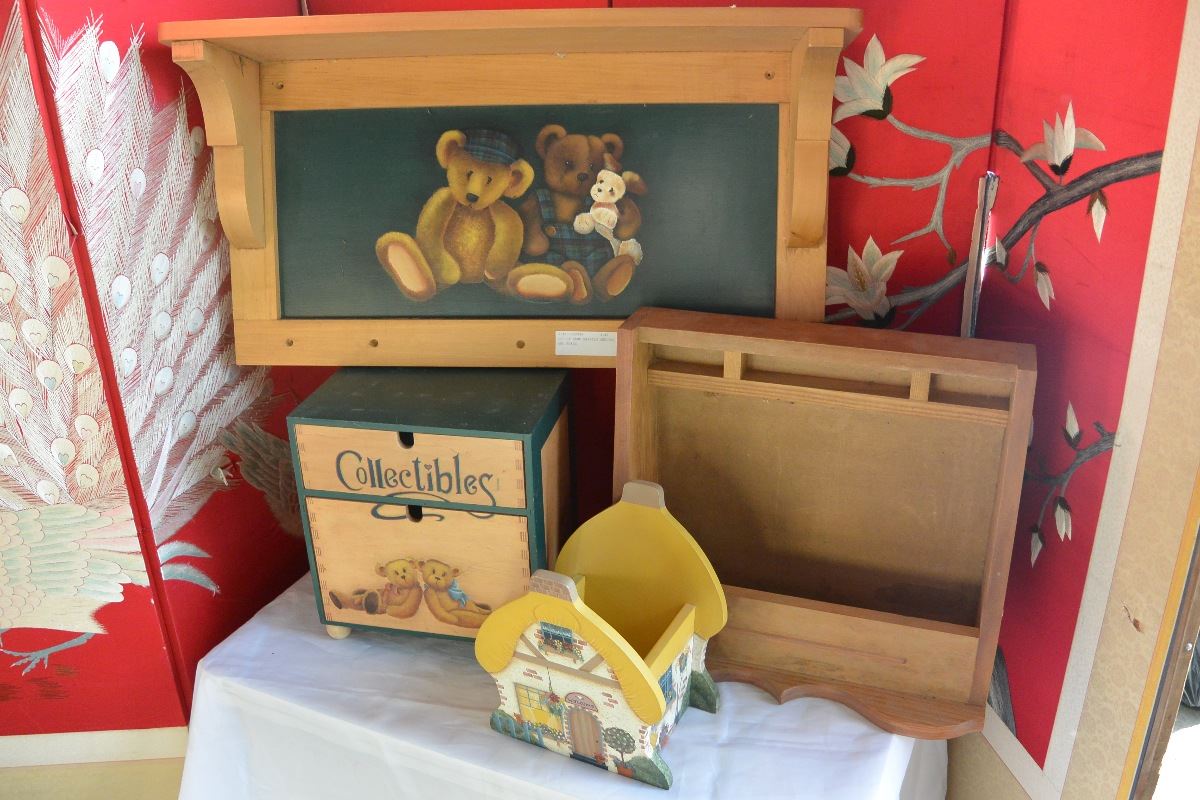 LOT OF HAND PAINTED SHELVES AND BOXES