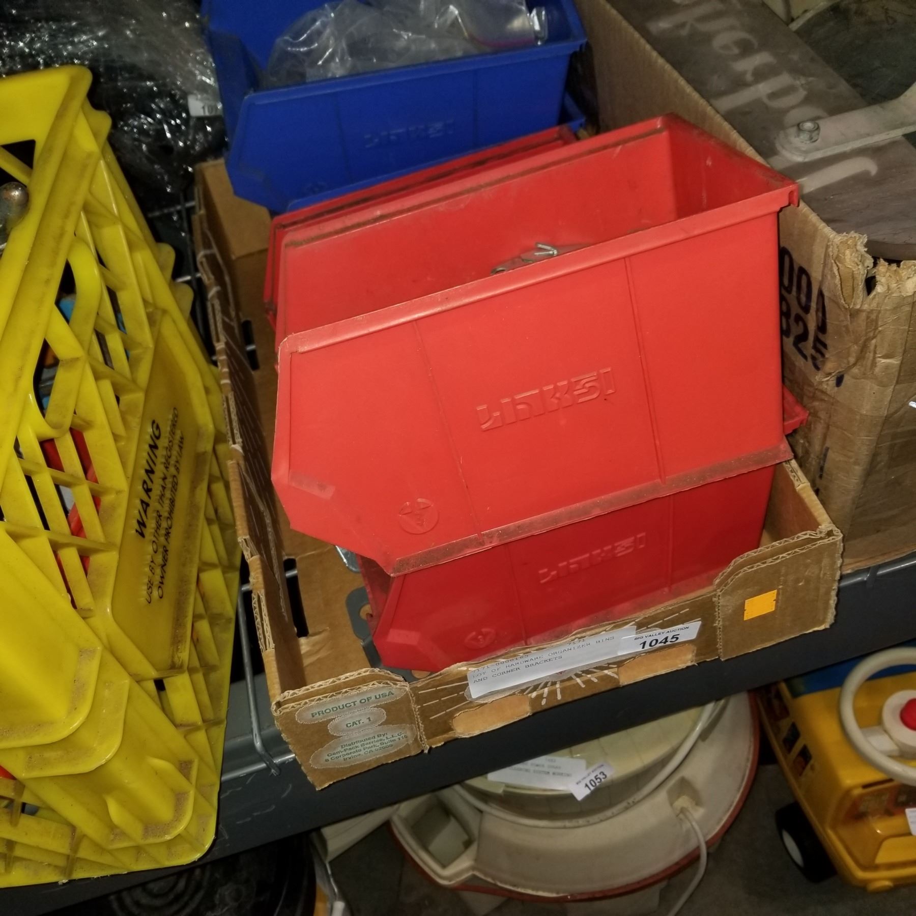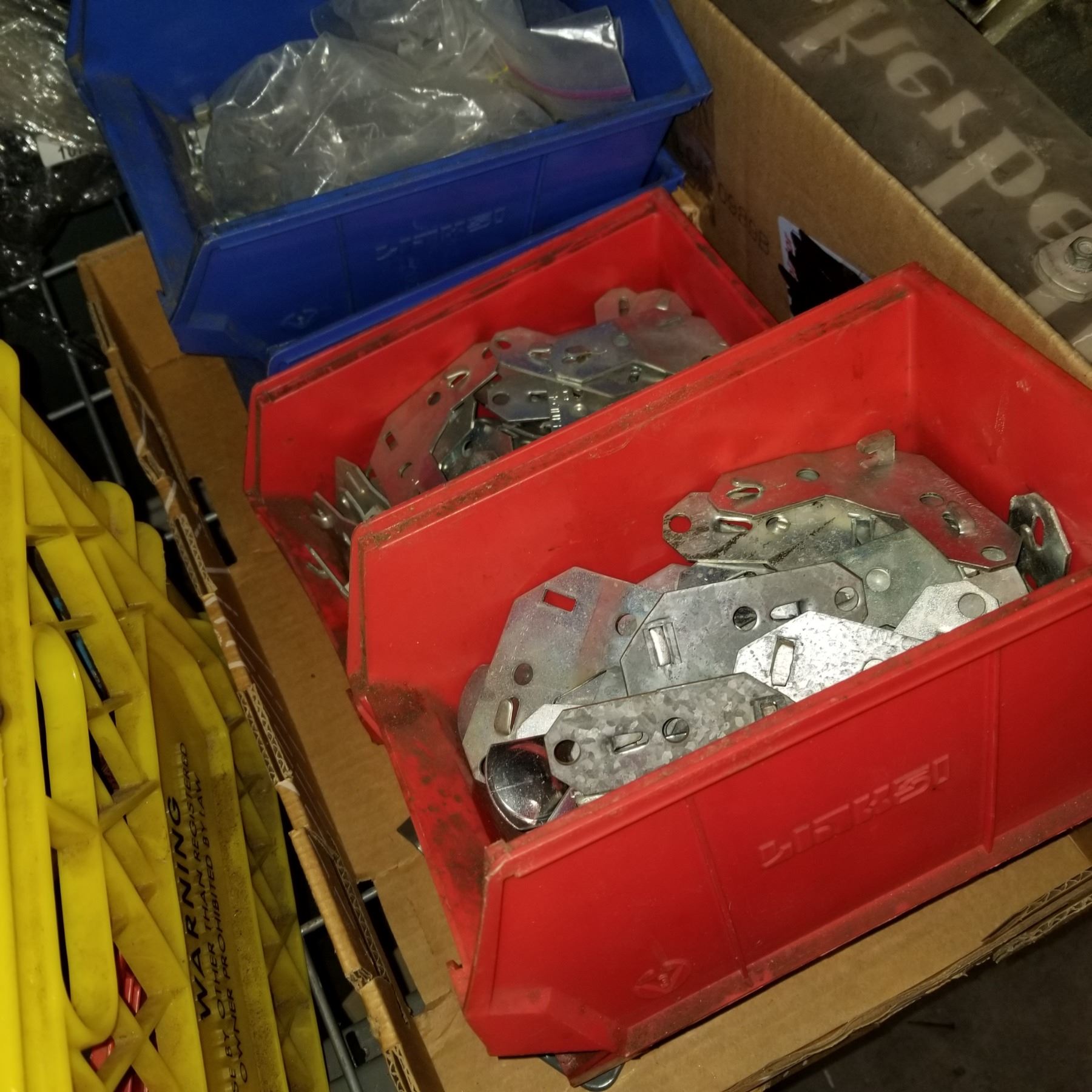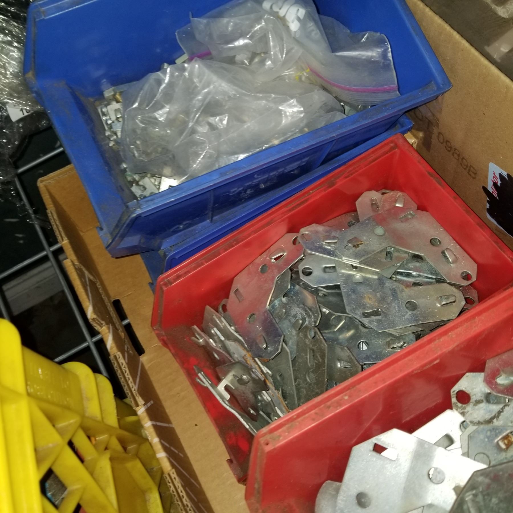 LOT OF HARDWARE ORGANIZER BINS AND CORNER BRACKETS