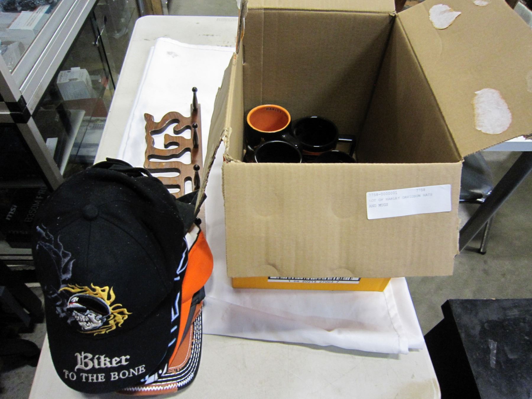LOT OF HARLEY DAVIDSON HATS AND MUGS