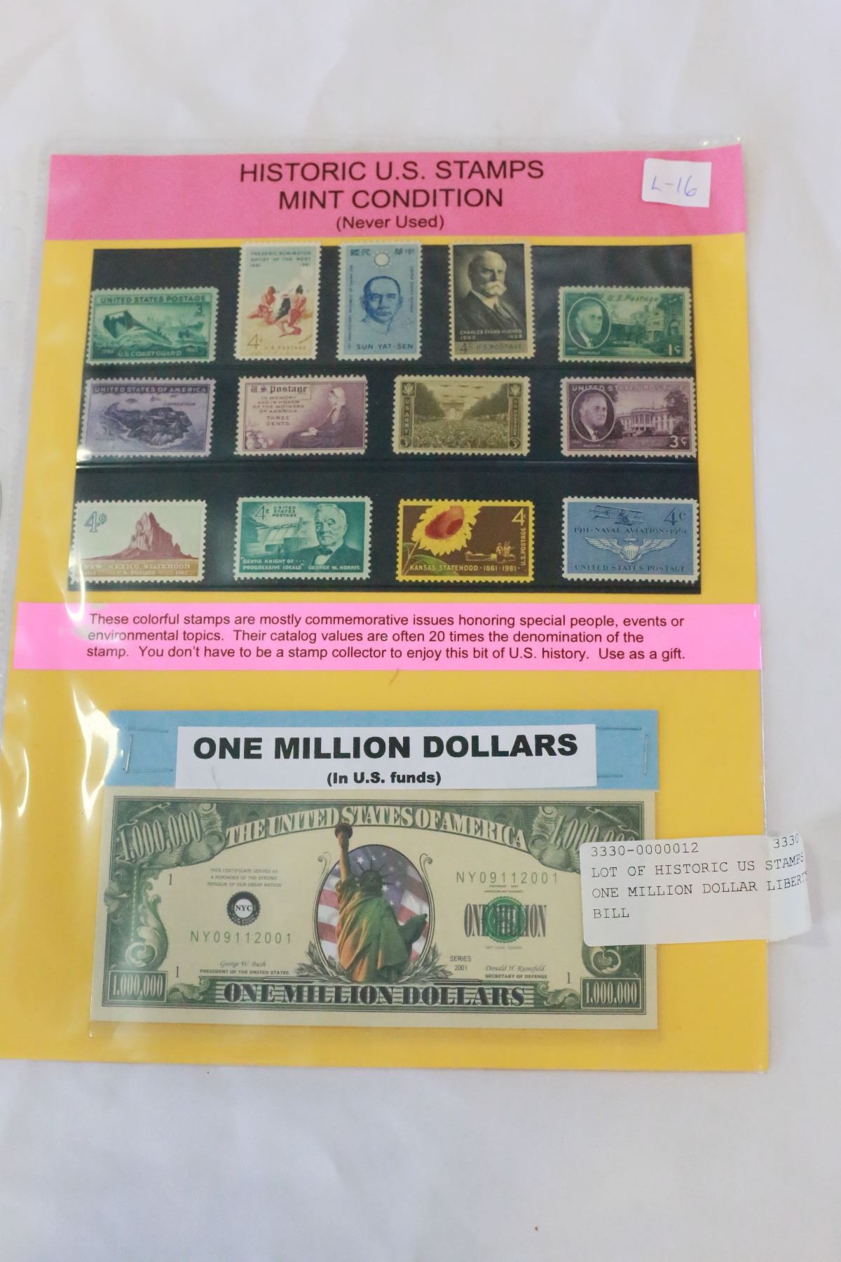 LOT OF HISTORIC US STAMPS AND ONE MILLION DOLLAR LIBERTY BILL