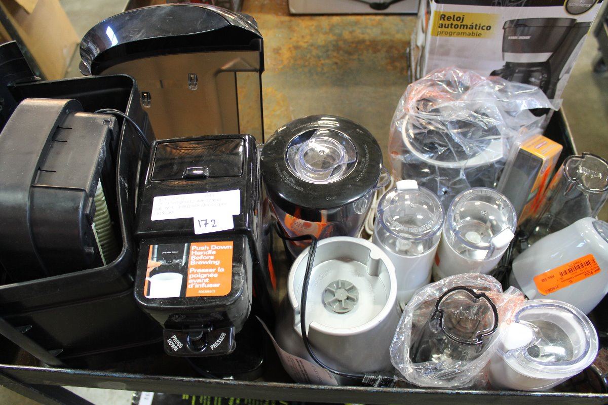 LOT OF HOUSEHOLD APPLIANCES AND PAPER SHREDDER AND COFFEE