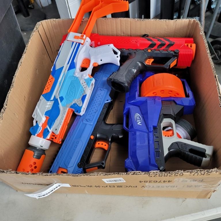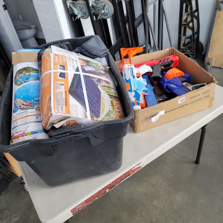 LOT OF INFLATABLES, AIR MATTRESS AND NERF GUNS