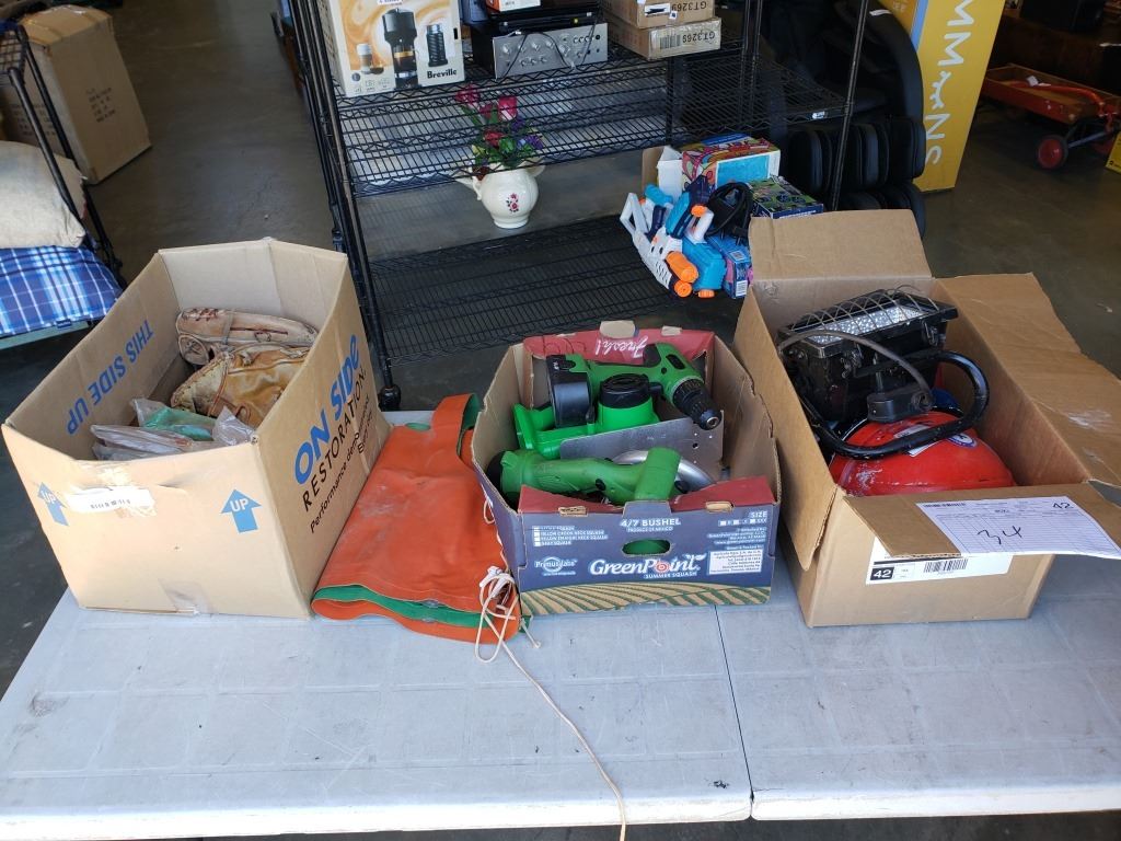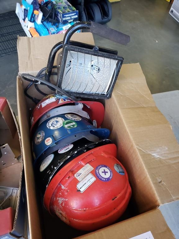 LOT OF INFLATEABLE LIFE JACKETS, HARD HATS, CORDLESS TOOLS