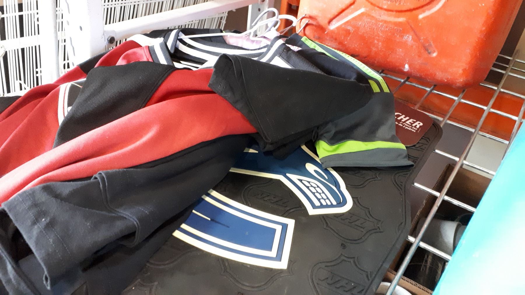LOT OF JERSEYS AND CANUCKS CAR MATS
