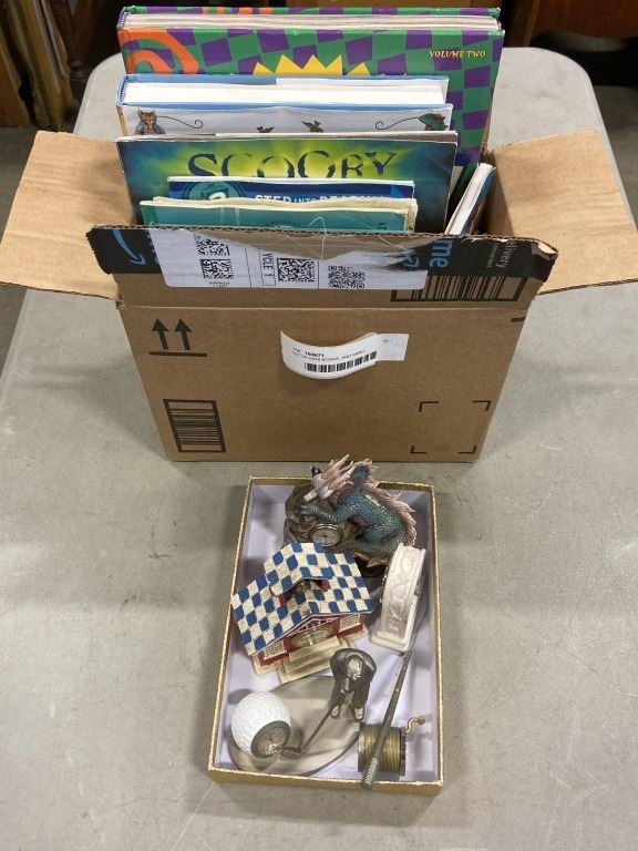 LOT OF KIDS BOOKS, AND SMALL COLLECTIBLES, DRAGONS,