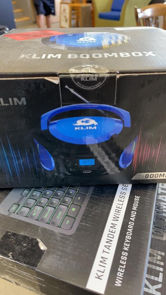 LOT OF KLIM BOOMBOX, WIRELESS KEYBOARD AND MOUSE WITH KLIM ULTIMATE