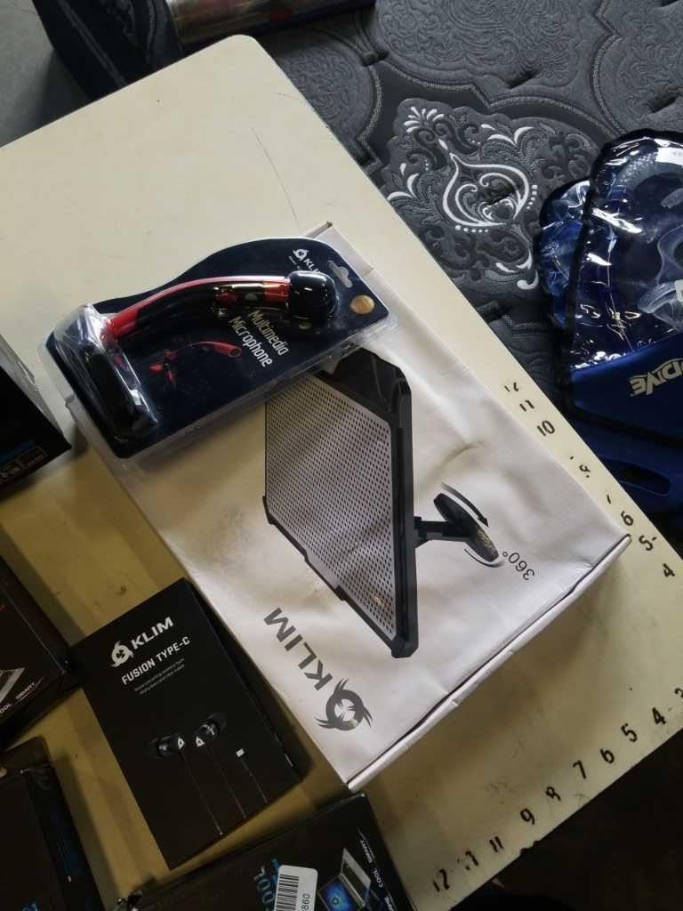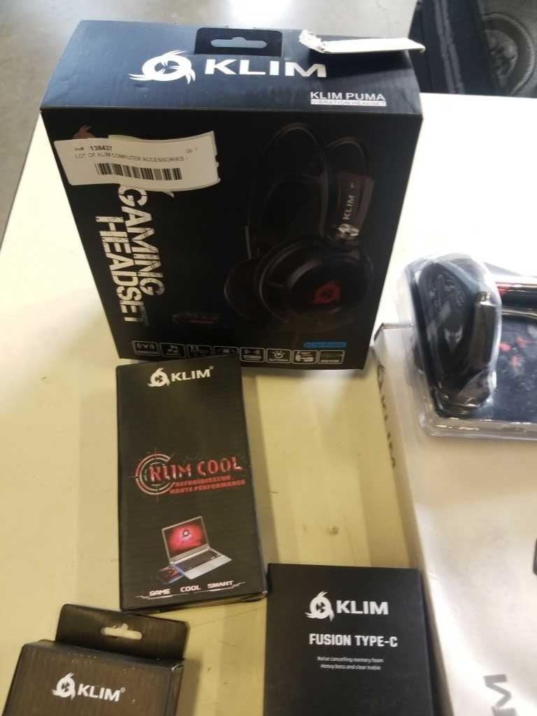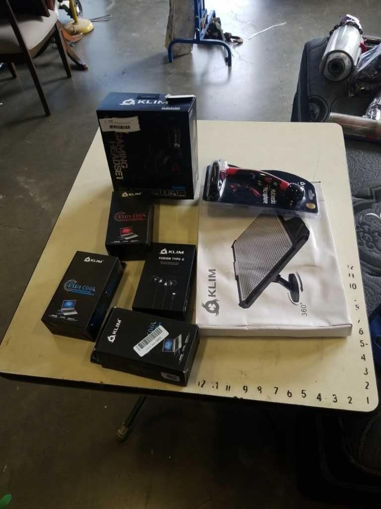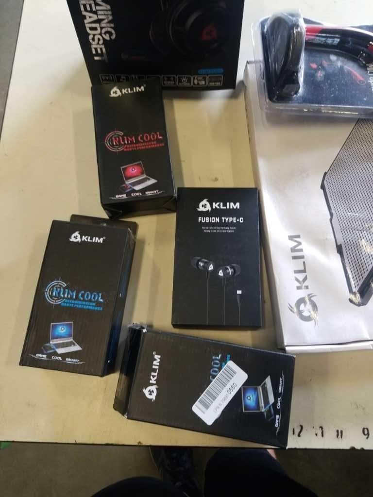 LOT OF KLIM COMPUTER ACCESSORIES - GAMING HEADSET, LAPTOP COOLERS, MICROPHONE, ETC
