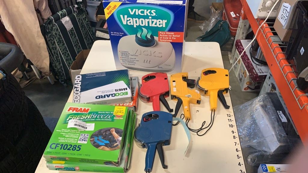 LOT OF LABEL MAKERS, VICK VAPORIZER AND AUTO FILTERS